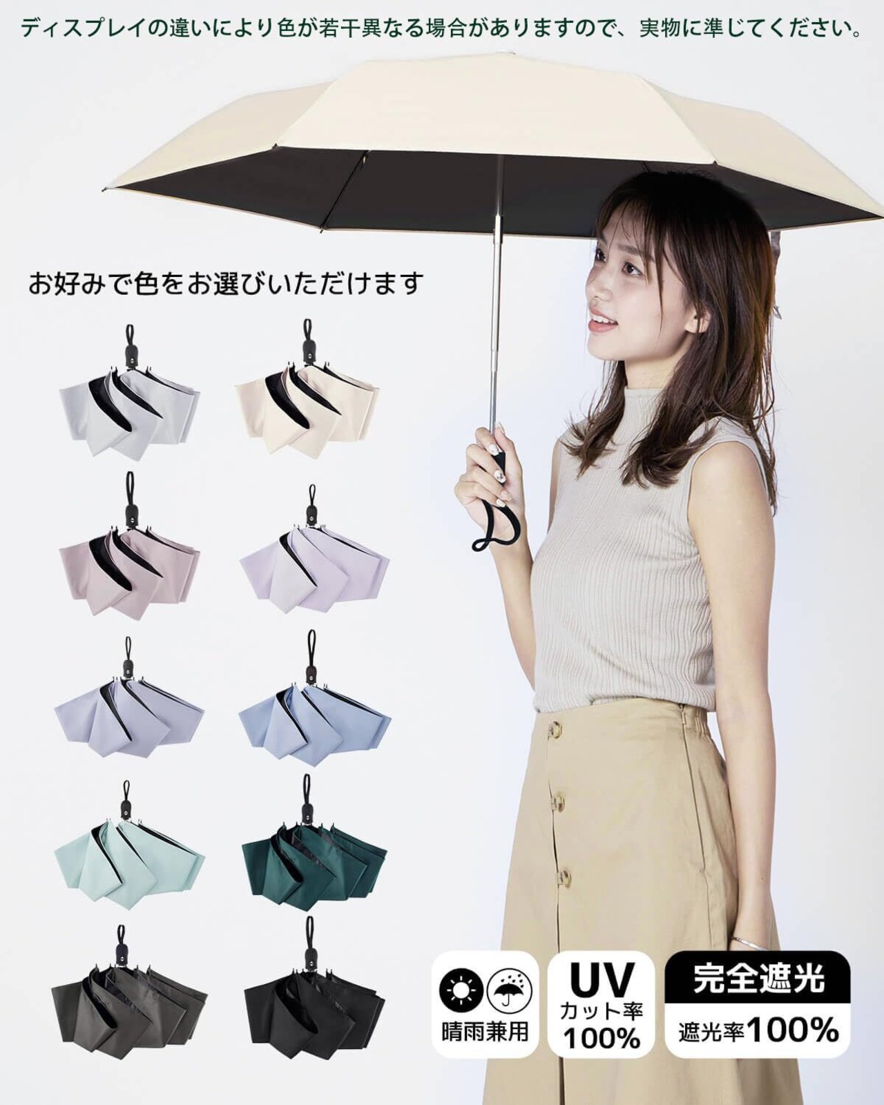 【UVカット*完全遮光】高密度の傘布と日焼け止めのブラックラバーコートを組み合わせた、優れた品質、優れたシェーディング効果、優れた断熱性。紫外線カット100%効果、UPF50+ 光透過率0、日差しの中で涼しく保ち、そしてあなたの肌を効果的に保護します。真夏の強い日差しを遮り、大切なお肌を太陽光線、紫外線からガードでき、日焼け対策アイテムとして猛暑を乗り切ります、UVカット率は100%以上。