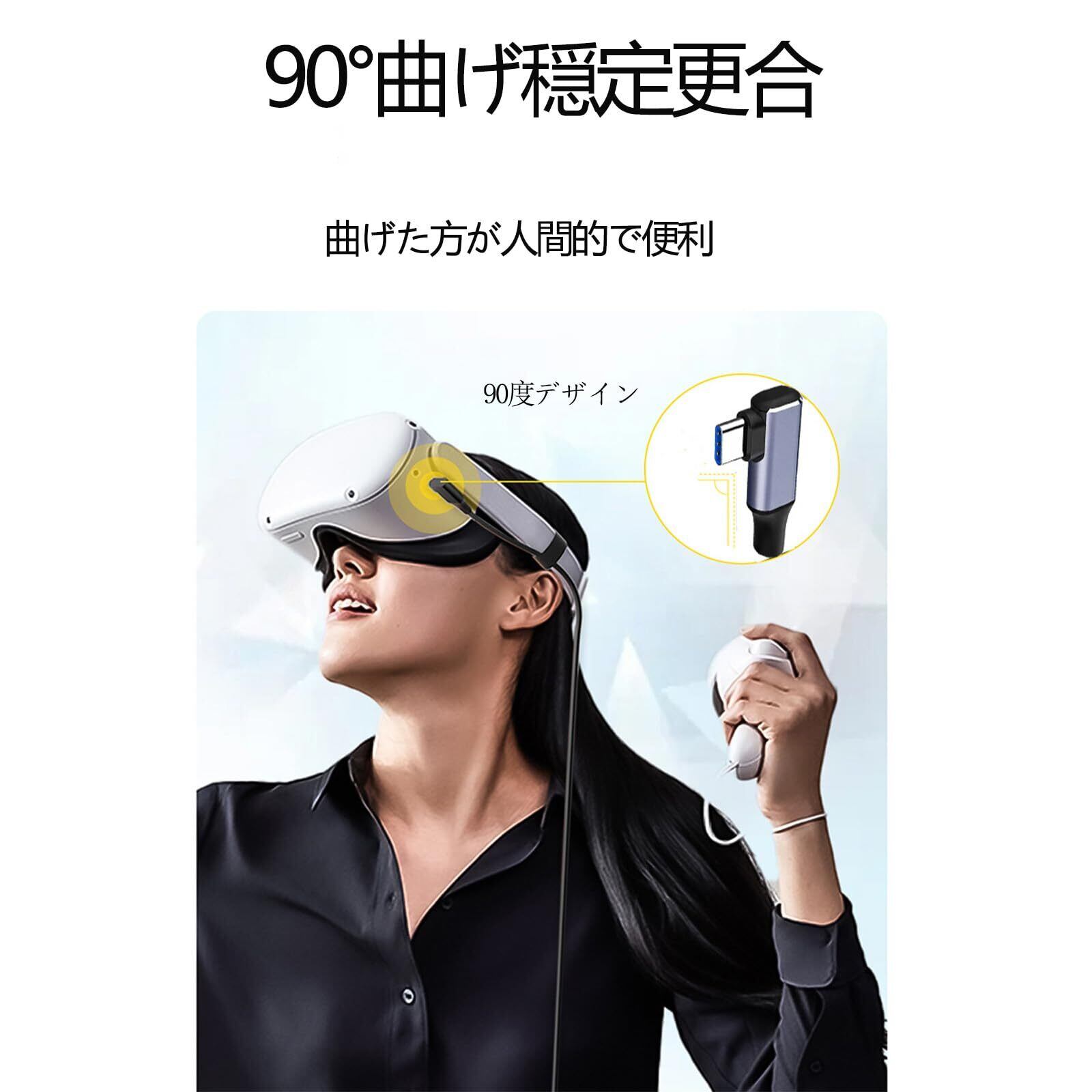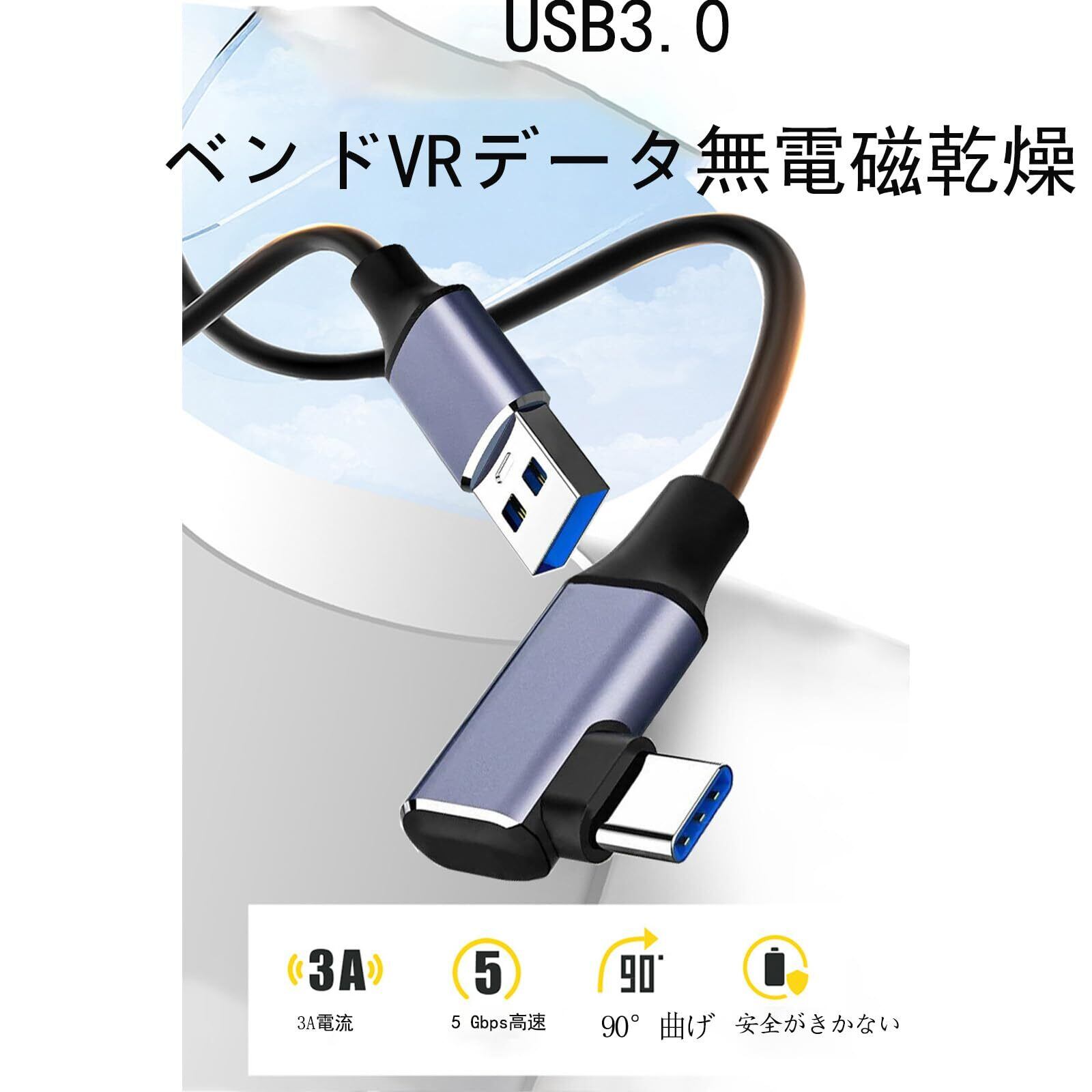 リンクケーブル 3M Quest 3/Quest 2/O4対応 L字型5Gbps 高速PCデータ転送 VRに対応 メタクエスト2/3用 アクセサリー USB 3.0からUSB Cケーブル(3M)