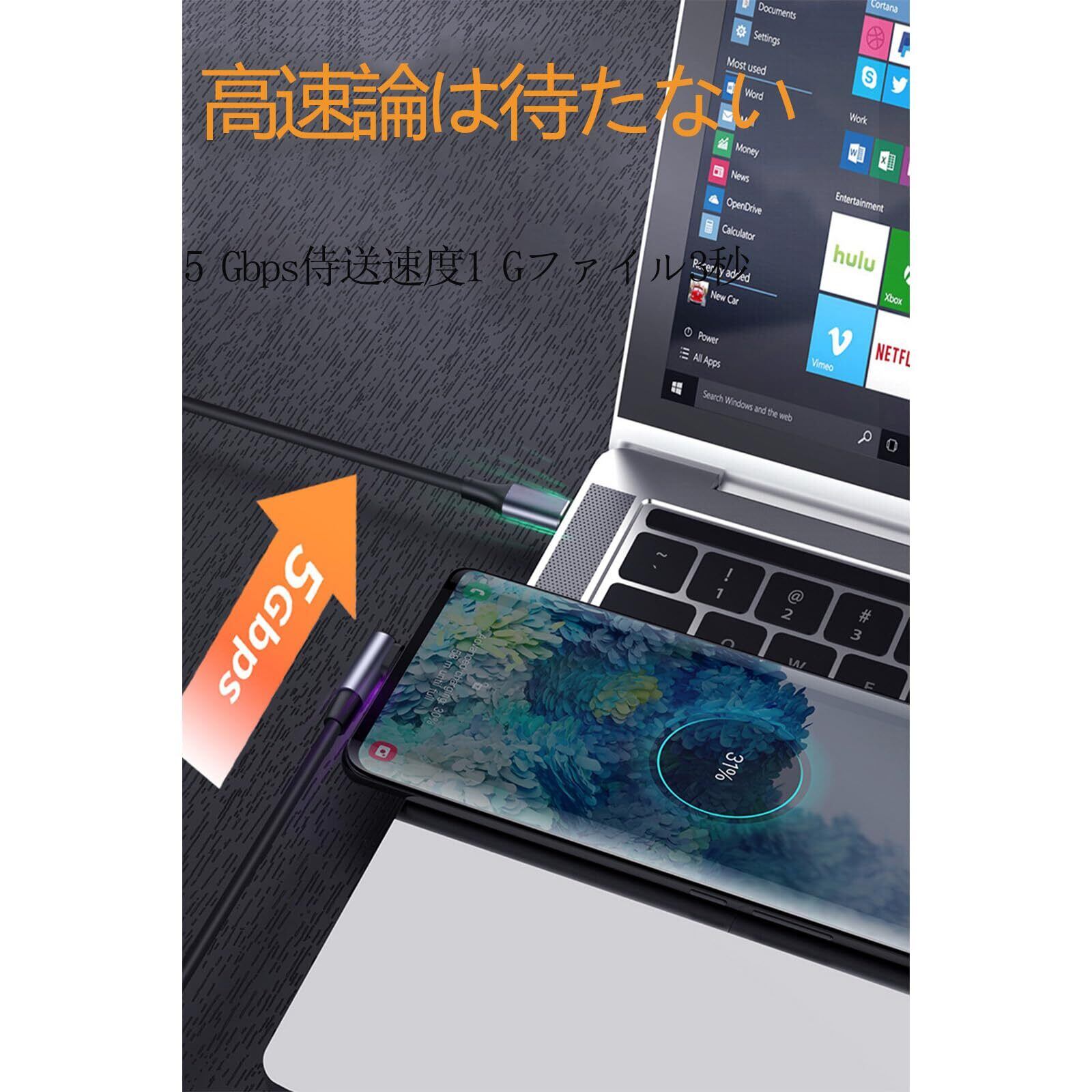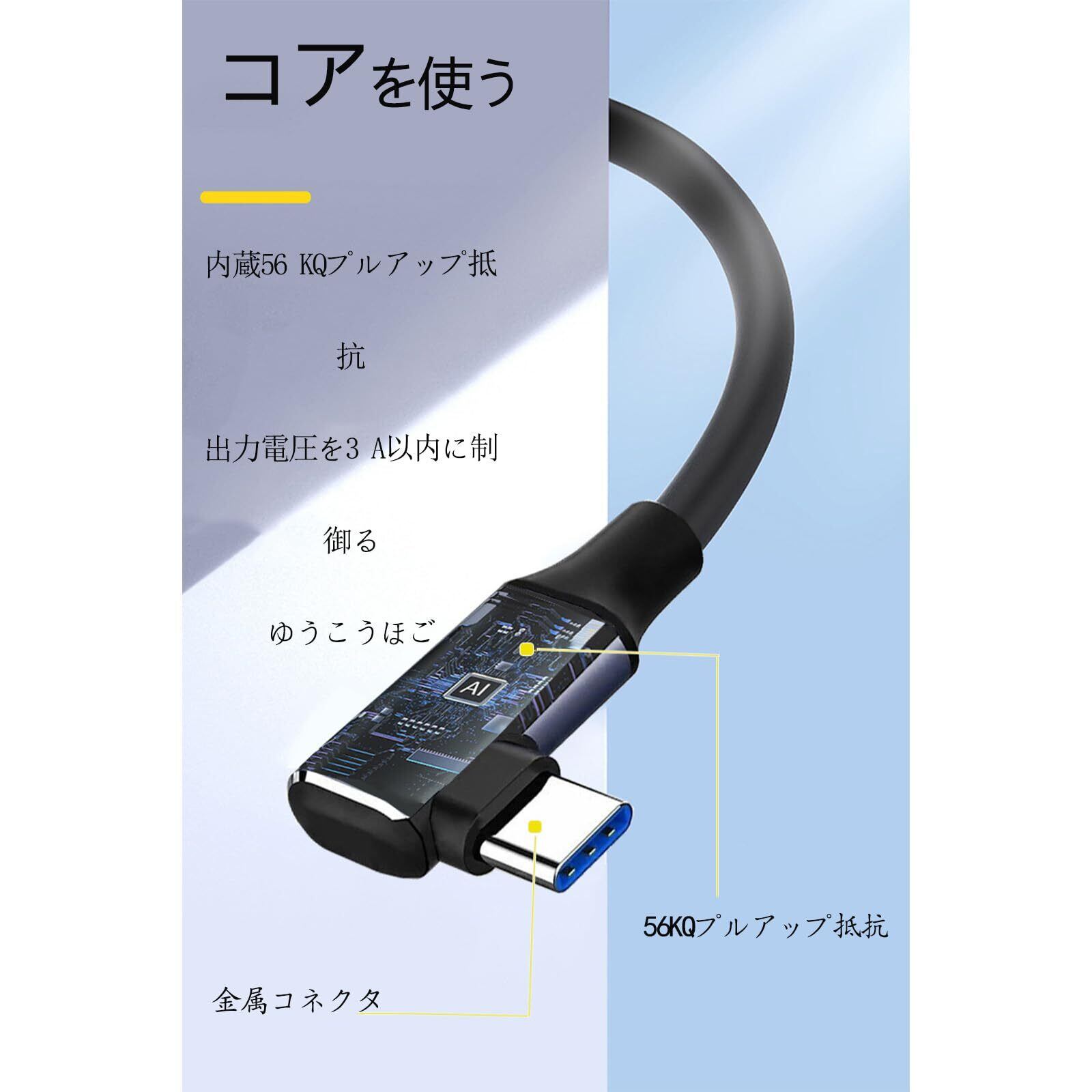 【強化された接続の安定性】:アップグレードした"L"形状のType-Cインターフェースは、頑丈で信頼性のある接続を保証し、ケーブルは15,000回以上の曲げに耐えることができます。のデザインは、まっすぐなものよりもしっかりとフィットし、移動時に接続が不安定になるのを防ぎます。また、ケーブルは柔軟で軽量であり、引っ張られる感覚を回避します。耐久テストに優