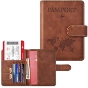 【在庫処分】[Hueapion] パスポートケース スキミング防止 パスポートカバー 多機能収納ポケット パスポート カードケース ラベルウォレット 高級PUレザー 軽量 コンパクト おしゃれ 海外旅行 旅行用品 透明パスポートカバー付き (カーキ-タイプ2)