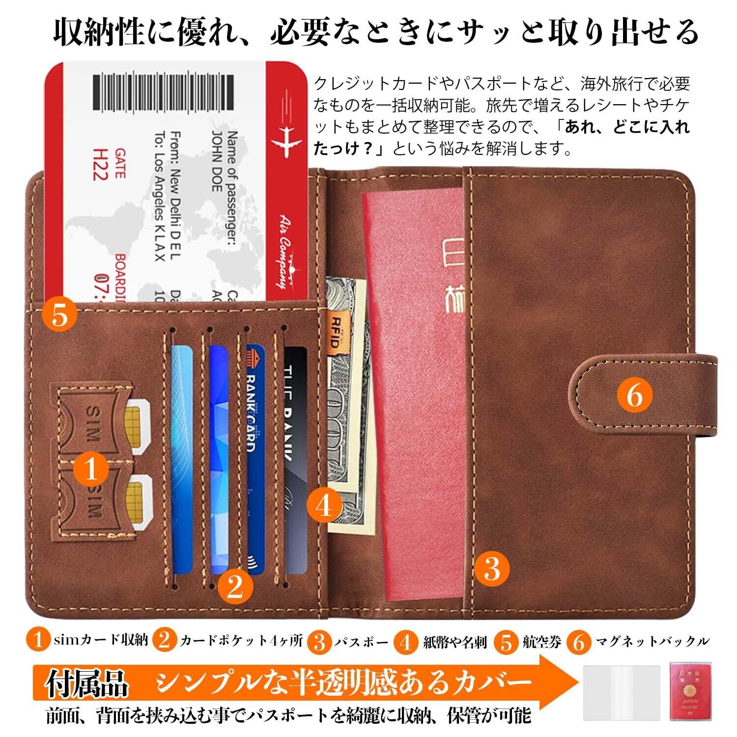 【多機能収納】外側はシンプルですが、内側はパスポート以外にも航空券、紙幣、クレジットカード、SIMカード等を収納できる多機能な作りです。旅先で増えるレシートや半券などもまとめて整理してしまえば、 「あれ、どこに入れたかな?」 なんて問題も解決