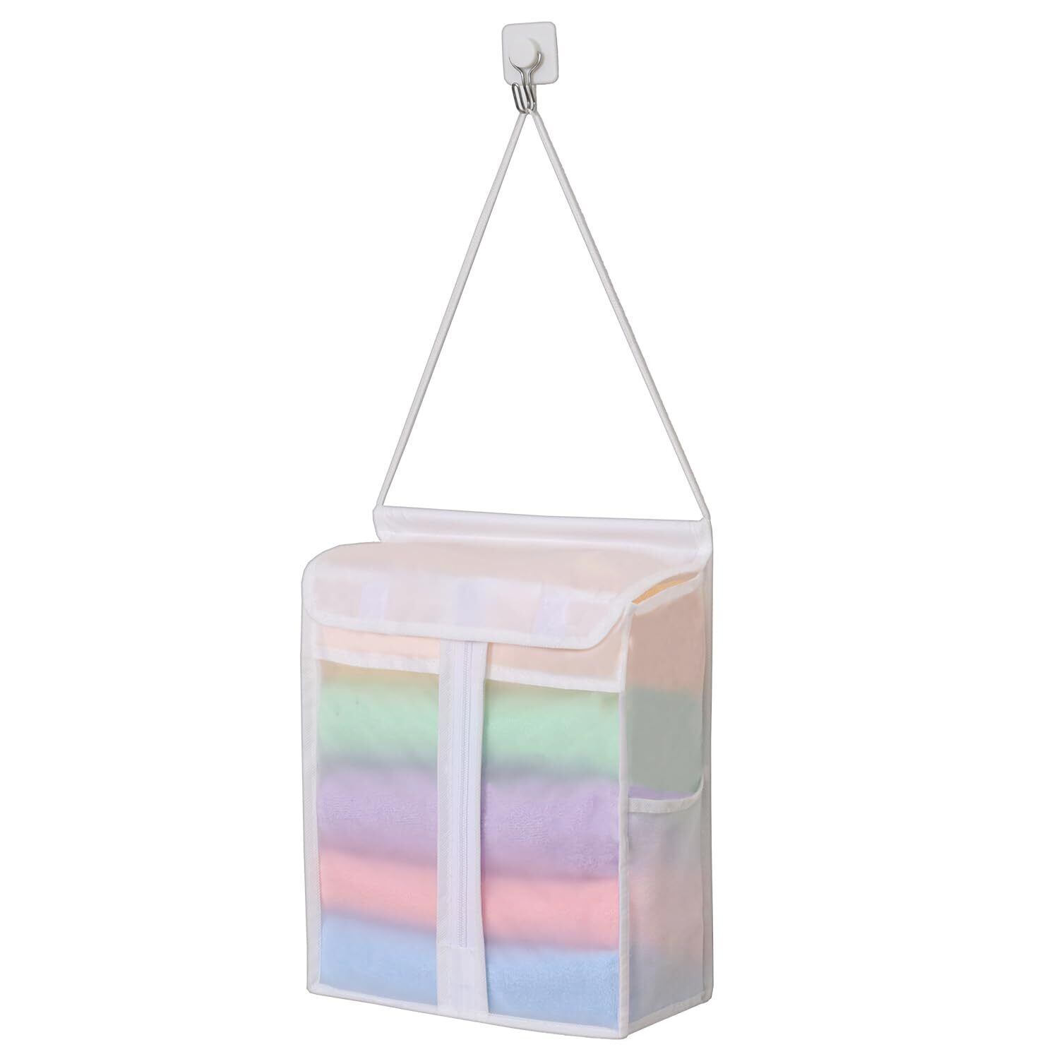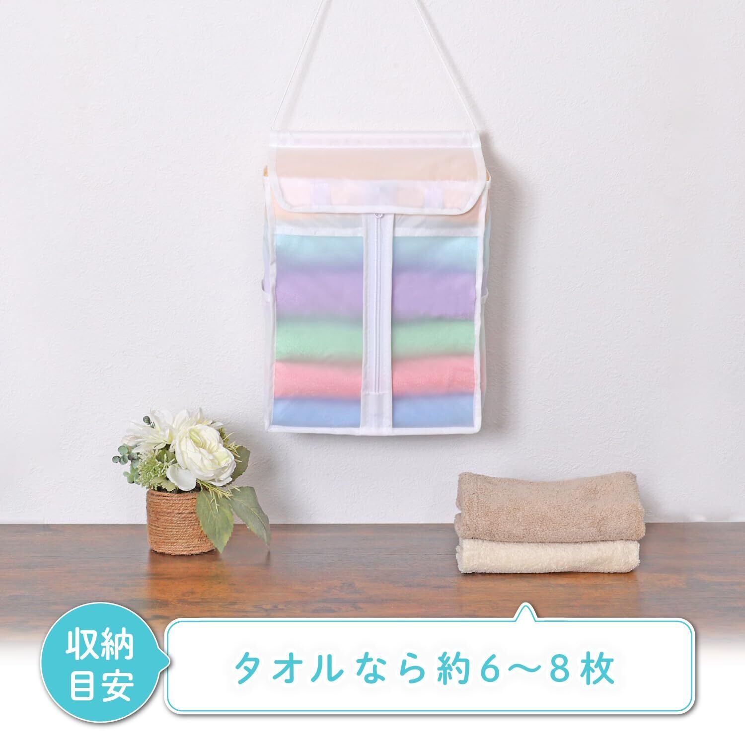 【2022最新】アストロ タオル収納ケース ホワイト 半透明 タオルストッカー 壁掛け 吊り下げ フェイスタオル入れ 保管ケース タオルホルダー 水に強い お手入れしやすい ポケット付き 110-03