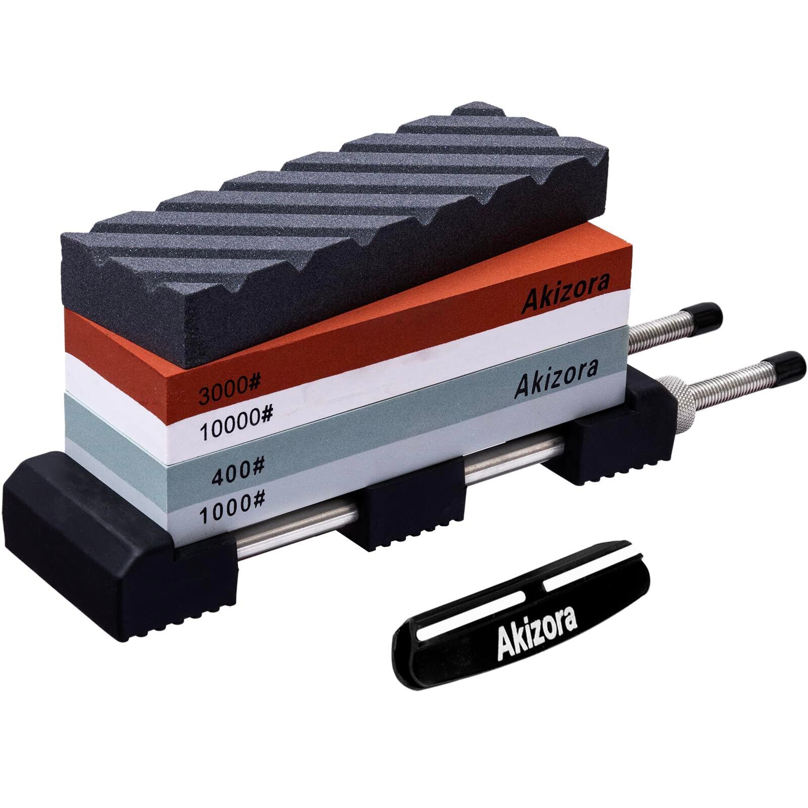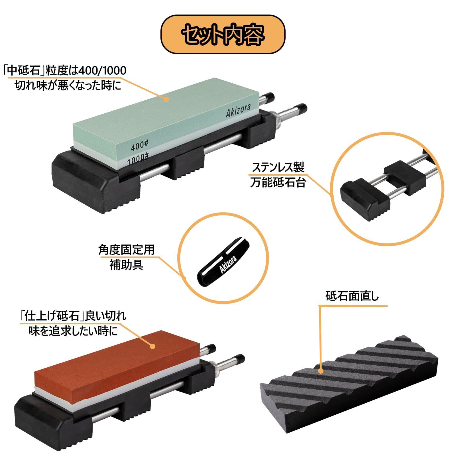 Akizora 砥石 包丁研ぎ石 400 1000 3000 10000 両面砥石 ステンレス製万能砥石台/面直し/角度固定ホルダー付き 家庭用荒砥石 中砥石 仕上げ 包丁研ぎに最適