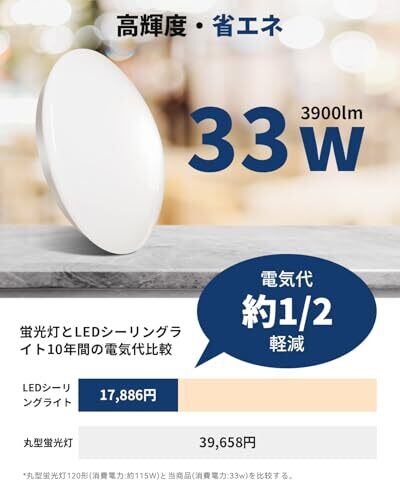 Hoshiakari LEDシーリングライト 6畳~8畳 33W 3900LM 無段階調光調色 常夜灯/タイマー/メモリー機能付き 取付簡単 リモコン操作 キッチン/ダイニング/寝室/書斎/オフィス適用 3年保証 【スマホ操作機能付き】