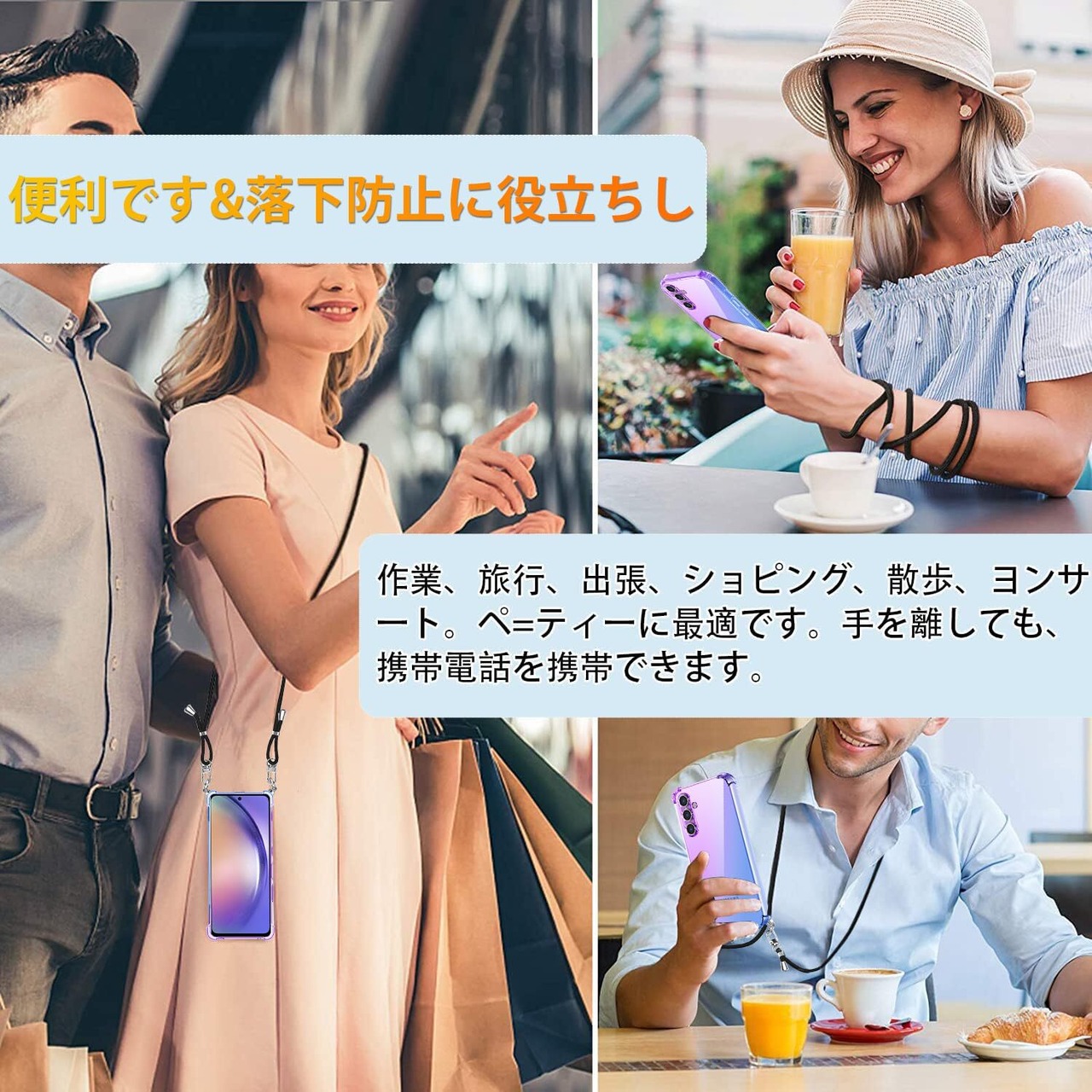 【ストラップ付き】 ケースには首から下げられるようにストラップが付いており、まるでアクセサリーのようにスマホを着用できます。わざわざバッグから出す手間なくメッセージやSNSをチェックできてとっても便利! 特に旅行時や、作業、旅行、出張、ショピング、散歩、コンサート、パーティーに最適です。手を離しても、携帯電話を携帯できます。