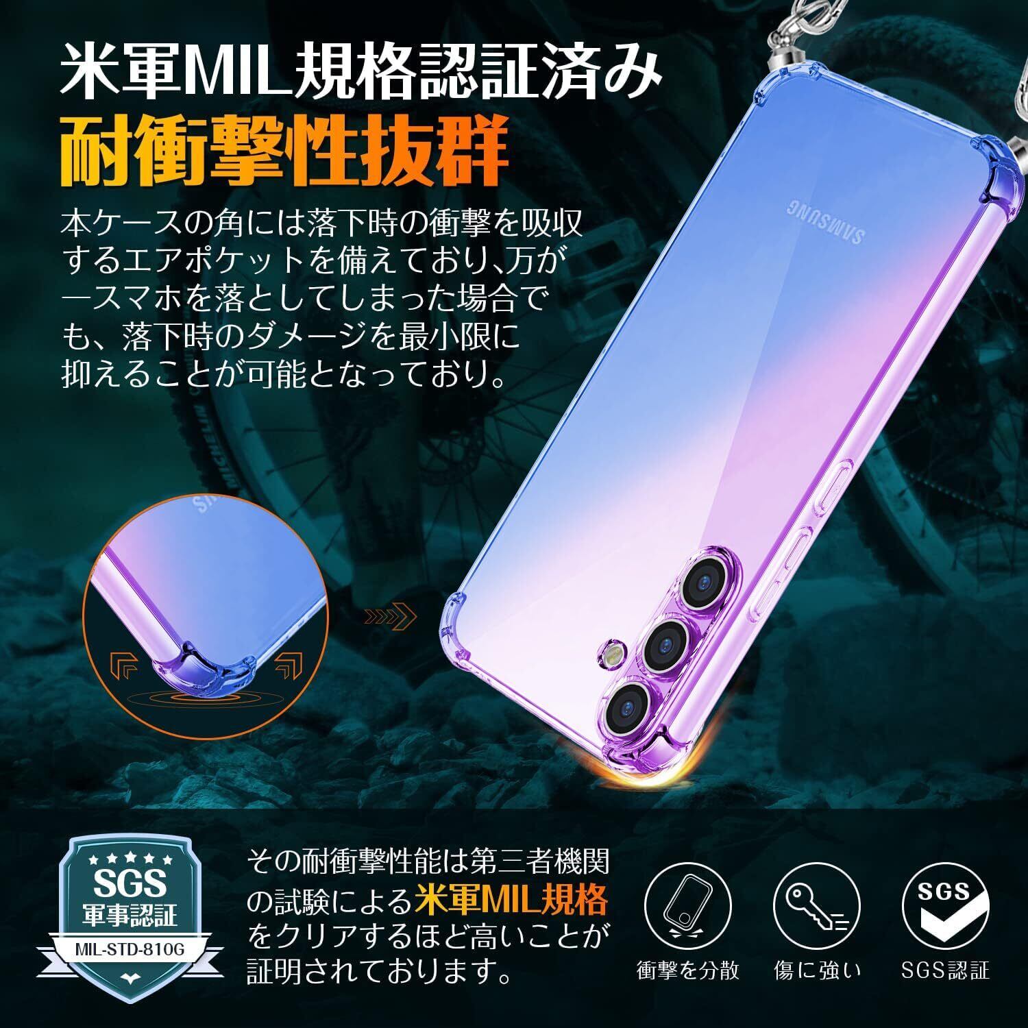 【2022最新】Galaxy A54 5G ケース クリア Galaxy A54 5G ケース SC-53D スマホケース 首掛け スマホ 肩掛けケース ストラップ シリコン カバー 斜めがけ 縄掛けケース TPU 薄型 軽量 シリコン ギャラクシーA54 5Gカバー グラデーション色 ケース 耐衝撃 指紋防止 防塵一体型 人気 携帯カバー (パープルブルー) | nico3588
