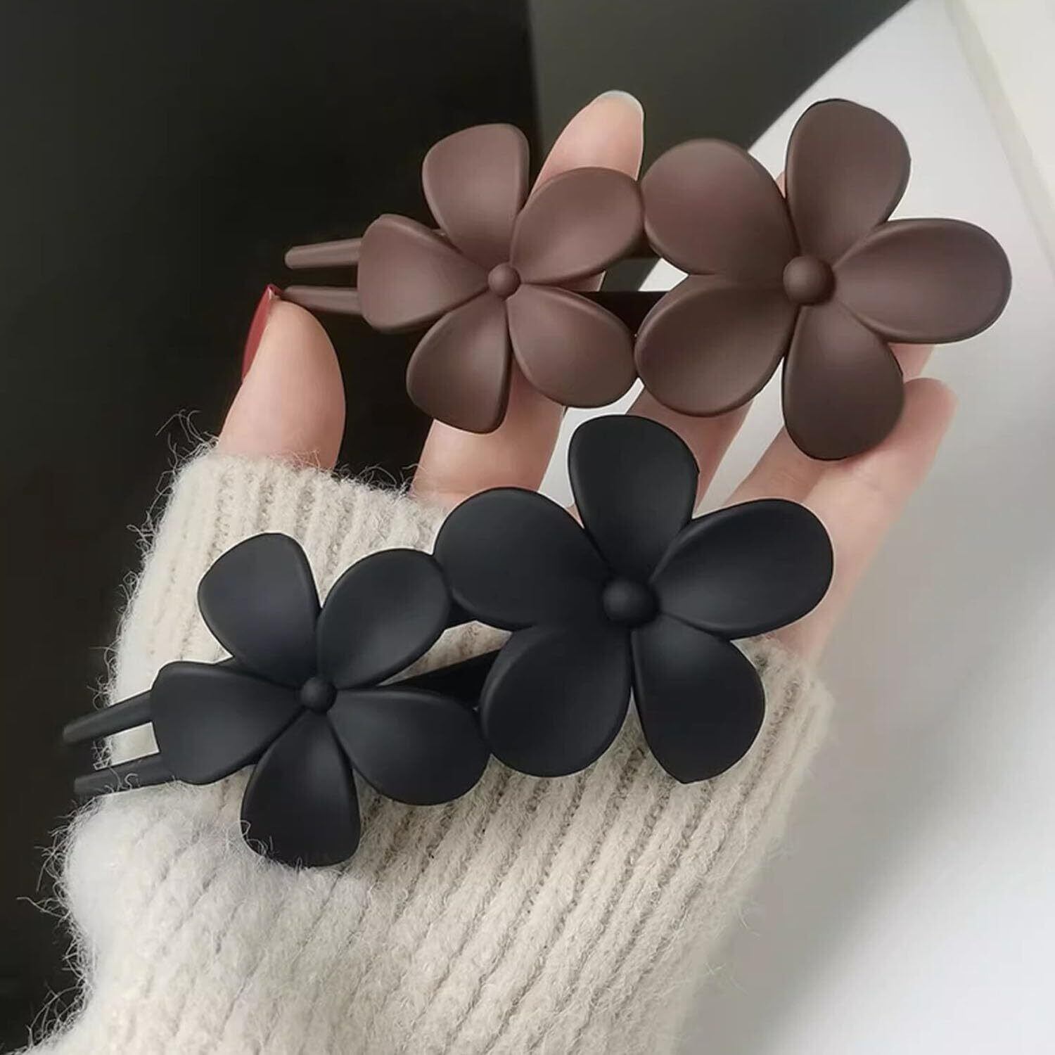 AUTAKI ヘアクリップ 3個セット 花形ヘアクリップ 髪留め マット 花モチーフ ヘアクリップ しっかりとまる 髪留め クリップ 大きめ レディース ヘアアクセサリー シンプル おしゃれ 韓国風 可愛い エレガント ヘアアクセサリー 普段使い 職場 仕事 通勤 女性用 (ブラック+コーヒー+ブルー)