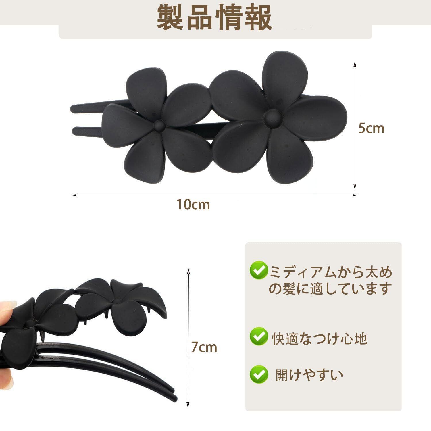 【商品の詳細】お届けするのはフラワーヘアクリップ3個、カラー:ブラック+ブラウン+ブルー、サイズ:10*5.3*3.5cm、素材:プラスチック