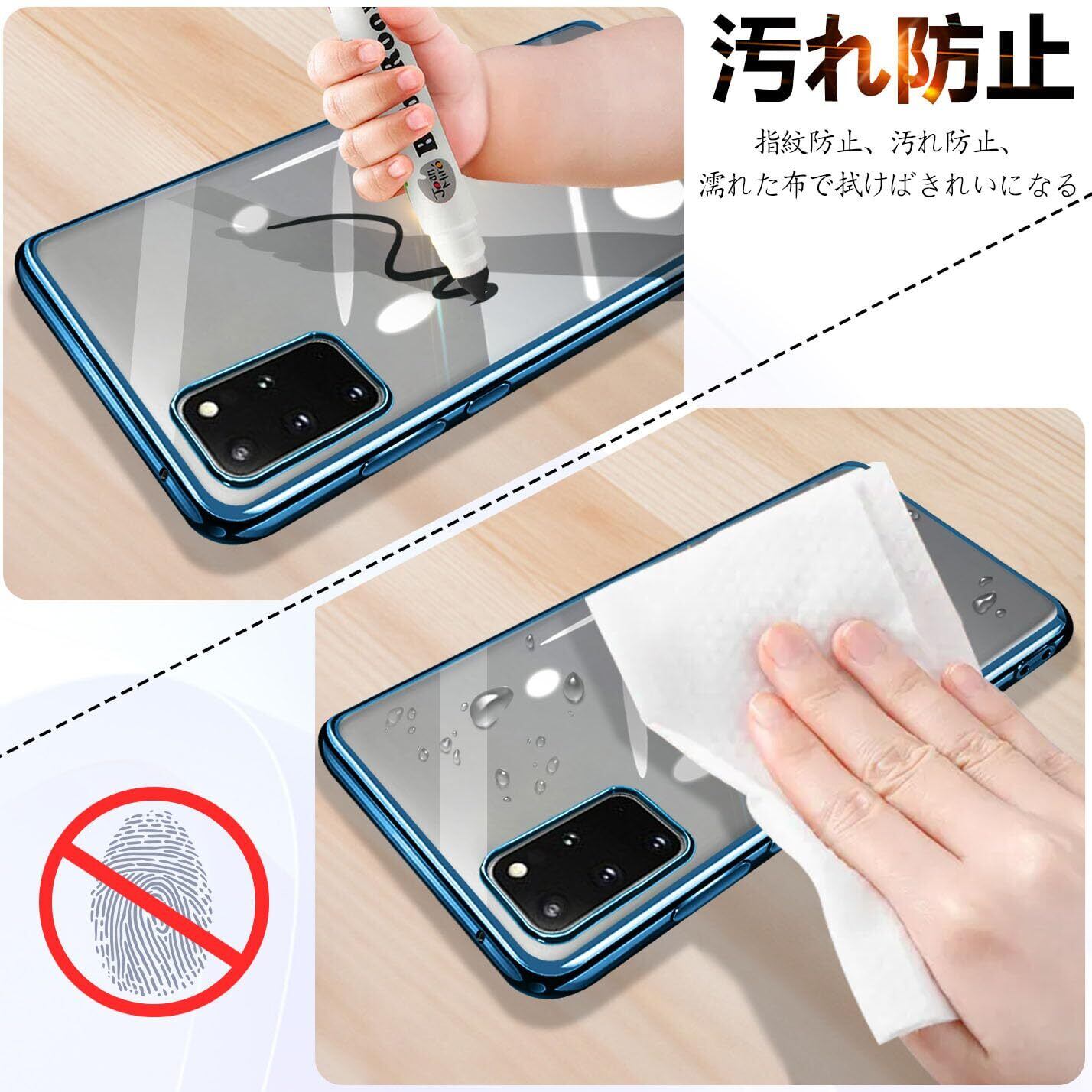 Galaxy S20 plus ケース クリア 青 ギャラクシーs20+ SC-52A SCG02 カバー 透明 耐衝撃 軽量 薄型 tpu 背面クリア 青縁 メッキ加工 スマホケース ソフト ストラップホール付き ワイヤレス充電対応(galaxyS20+, ネイビーブルー)