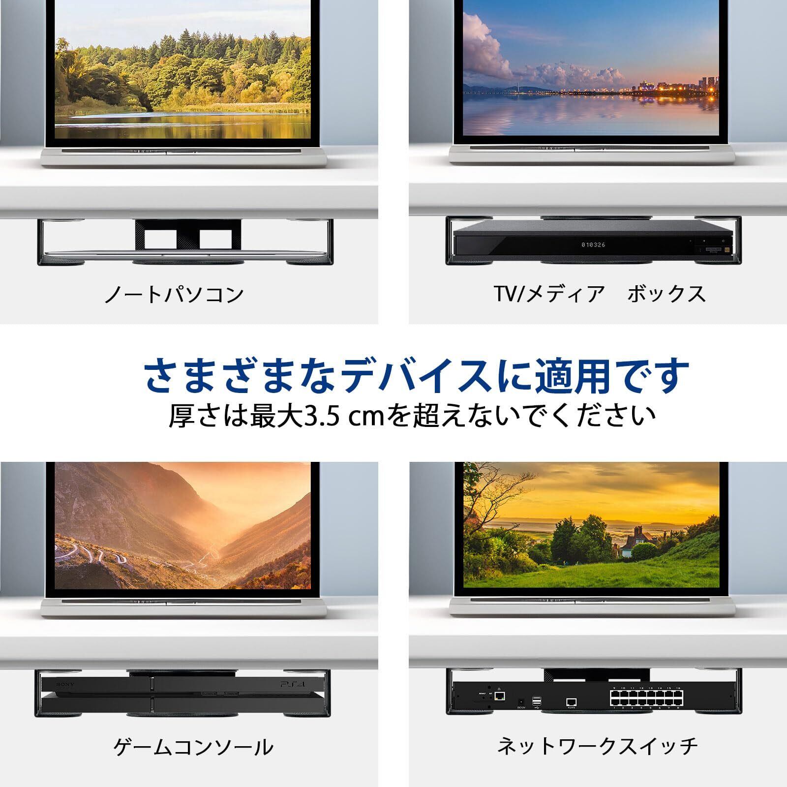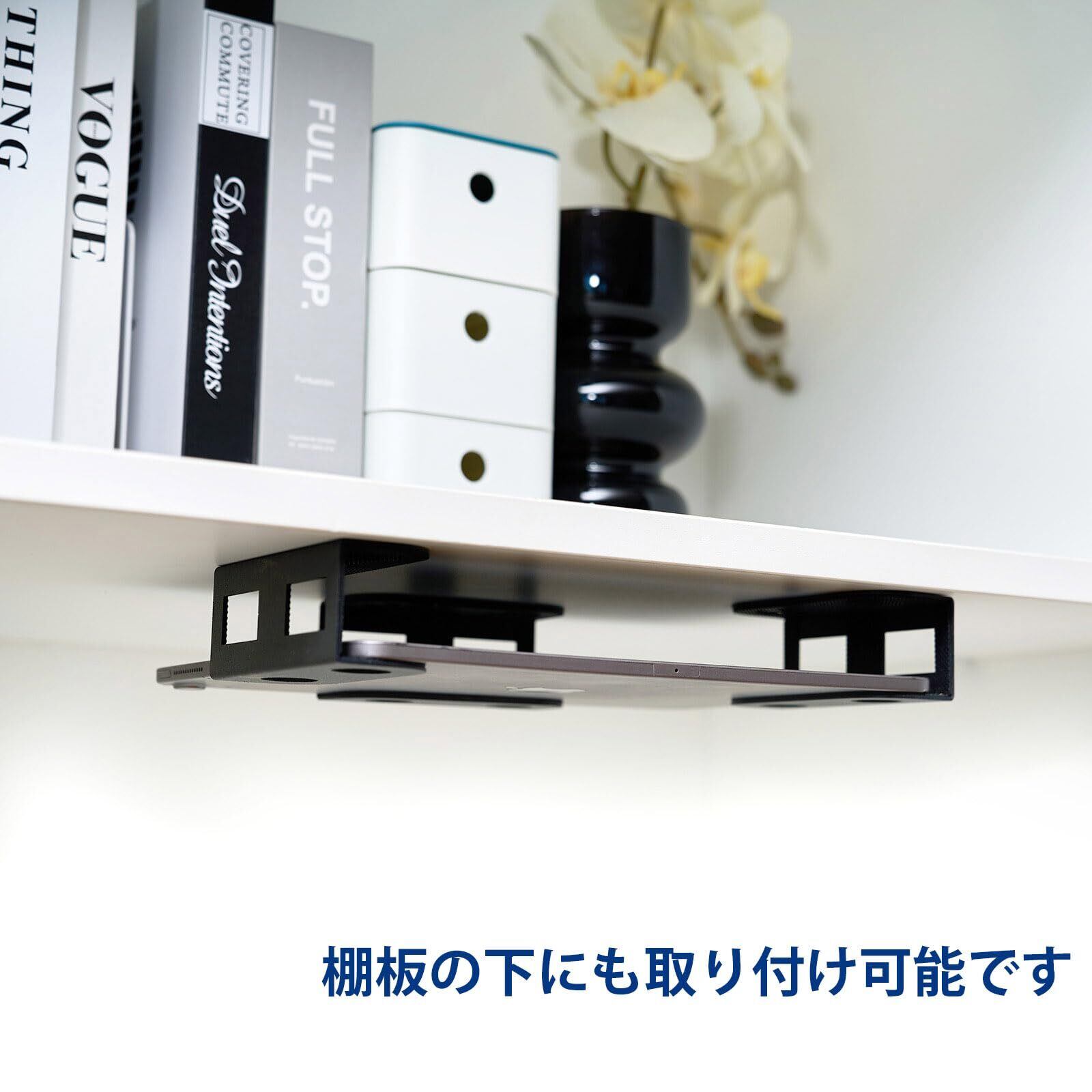 【2種類の取り付け方法があります&多用途な利用】このノートパソコン収納ブラケットは机の下や壁に必要に応じて取り付けることができます。製品高さ:4cm、ネジの長さ:1.2cm、本製品のサイズを考えれば、ノートパソコンだけでなく、さまざまなアイテムに対応可能です。需要に合わせて柔軟にご利用いただけます。※購入前に机の厚さを測っておきます。