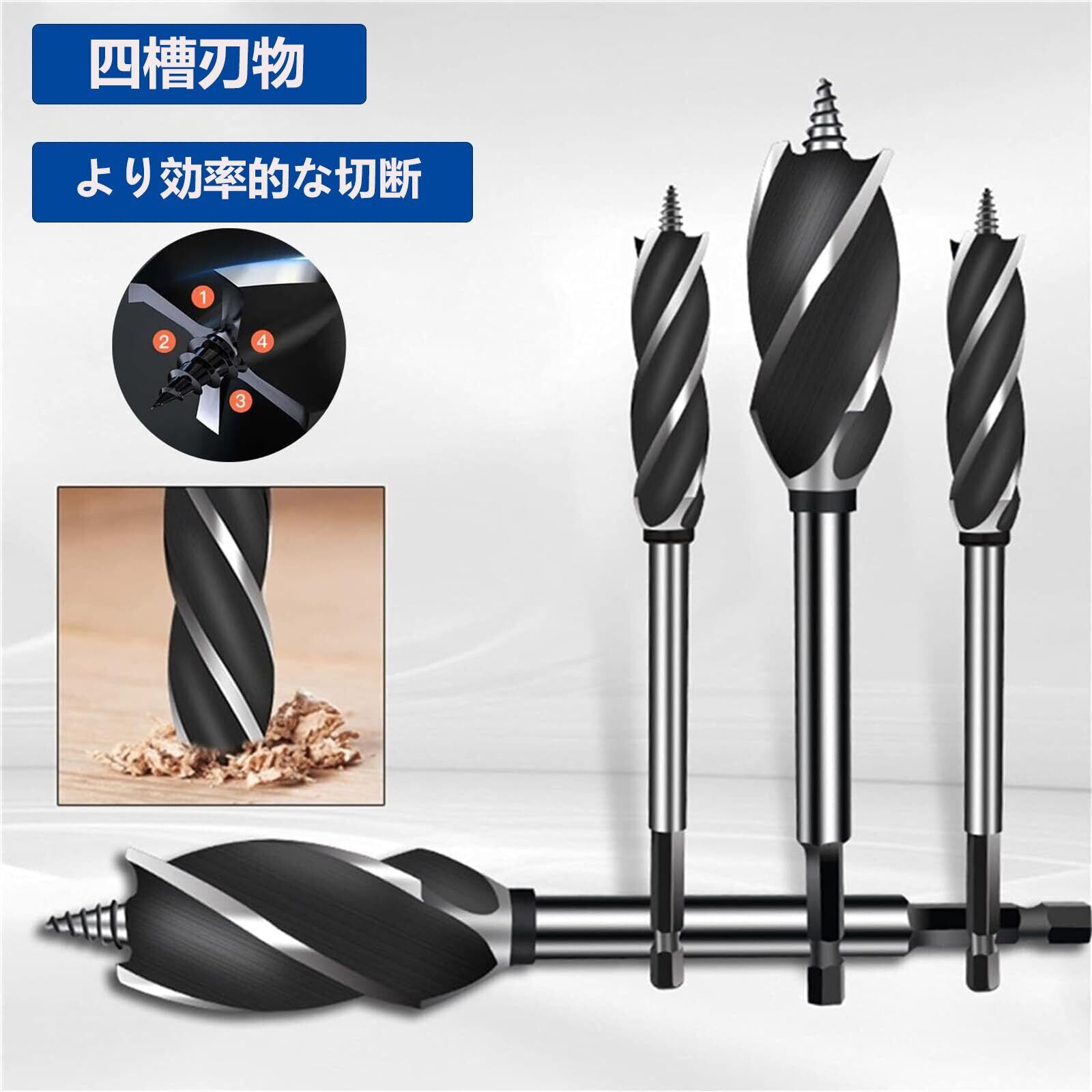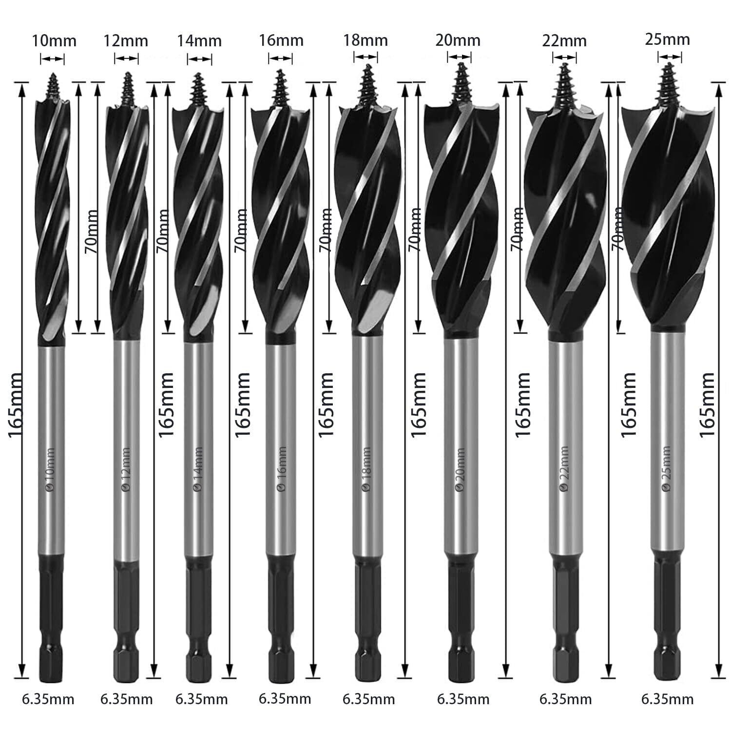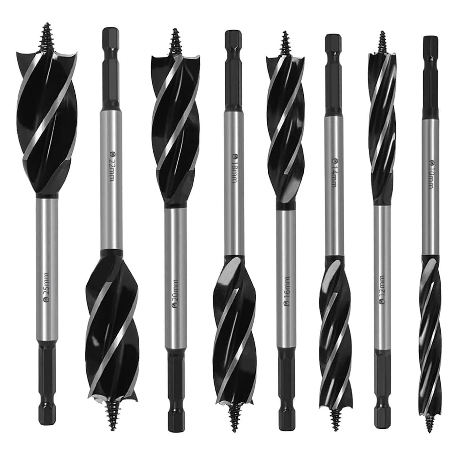 YUENTOEN 木工用ドリル 6.35mm六角軸ドリル サイズ10mm 12mm 14mm 16mm 18mm 20mm 22mm 25mm 8本セット ドリルビット 四刃 穴あけ オーガードリルビット 木に穴を開ける工具