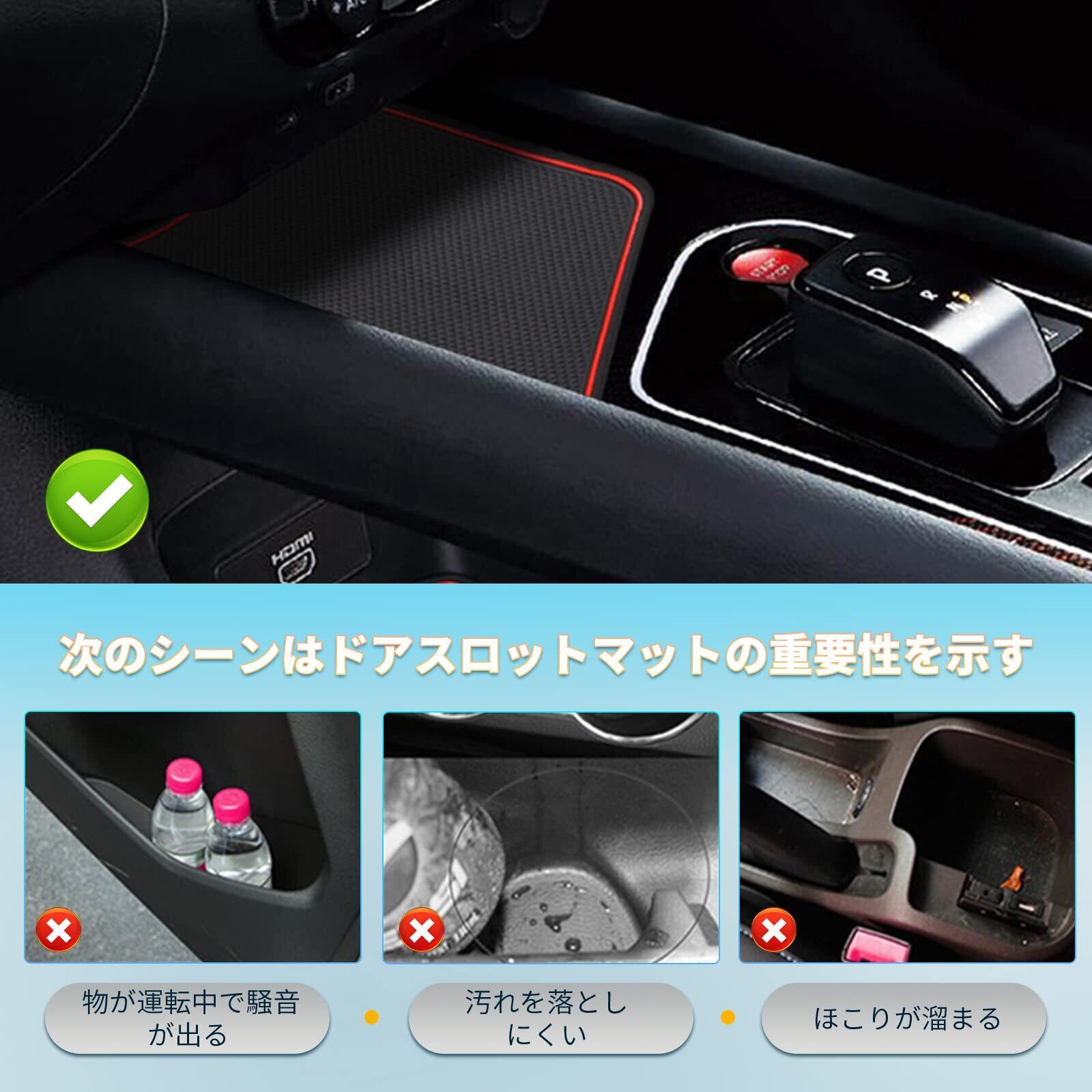 【カタカタ音防止 滑り止め効果向上】:このe13ノートインテリア ラバーマットの表面は独自の滑り止めテクスチャを採用して、このテクスチャが摩擦を強化し、運転中の衝突によるコイン、携帯電話、その他の小物の滑りを効果的に防ぎます。 また、ラバーマットのエッジも特別に処理されて、車とのフィット感が向上し、滑り止め効果がさらに向上しています。 高速道路での高速運転でも、街中でのゆっくり運転でも、このゴムマットは、走行振動や小物の摩擦によって引き起こされるカタカタ雑音を防ぎ、運転中の安心感を高めます。