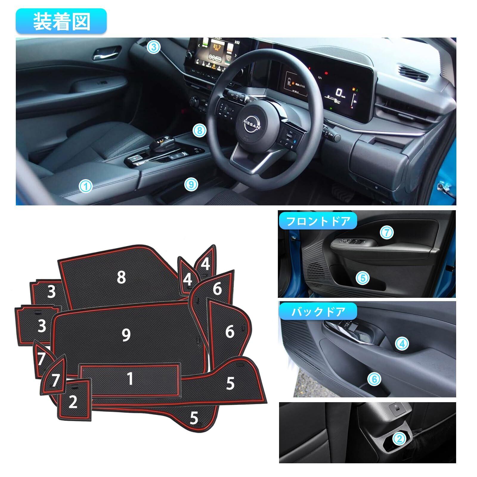 【滑り止めマット専用車種】:ニッサン ノートE13 (2020-2024.1モデル) 各車種に独自のデザイン上の特徴があることを考慮し、弊社は車種専用なインテリアラバーマットのみを設計しています。 この滑り止めマットは、車種専用のデザインコンセプトを採用して、車にフィットし、車をキズから守ります。