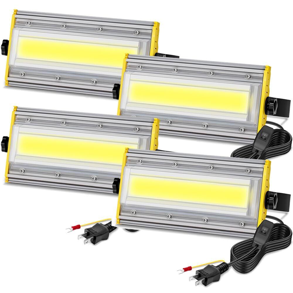shineshare LED投光器 屋外 50W 作業灯 850 W相当 8000LM コンセント式 超薄型 防犯灯 玄関ライト 昼白色 80V-150V適用 IP67防水 角度調整ノブ 高輝度 3Mコード 廊下 倉庫 ガレージ 看板灯 BBQ 庭園 夜間作業 駐車場 【2Pプラグ】 4個セット