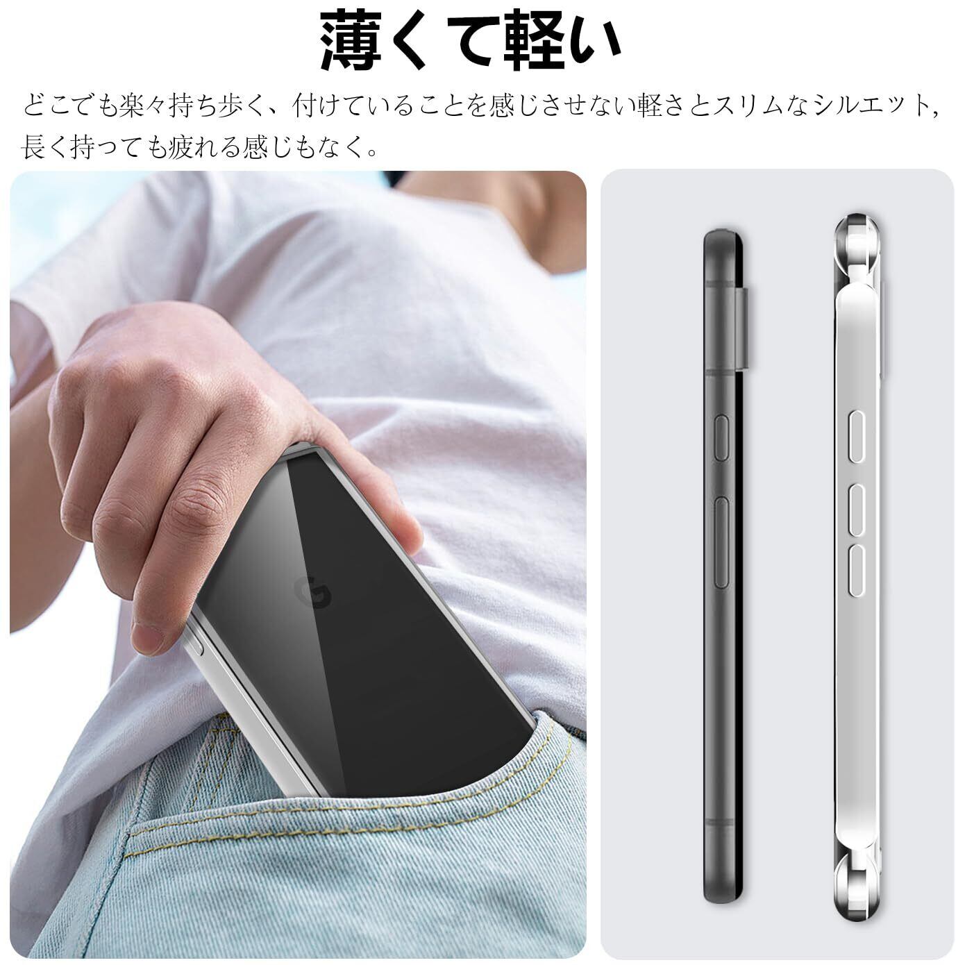 【高品質な素材】この透明な携帯ケースは、柔らかいTPU素材を採用して作られており、スマホ本体に近い手触りを感じることができ、持ち心地も快適です、落下のリスクも減らします。酸化を防ぐ特殊加工を使って、黄ばみにくく、透明感を長期間保持します。本商品は端末に触れるケース裏側に極小さな微粒子上の突起処理を行い端末の発熱を軽減する散熱加工を行っております、気泡の発生も防ぎます。