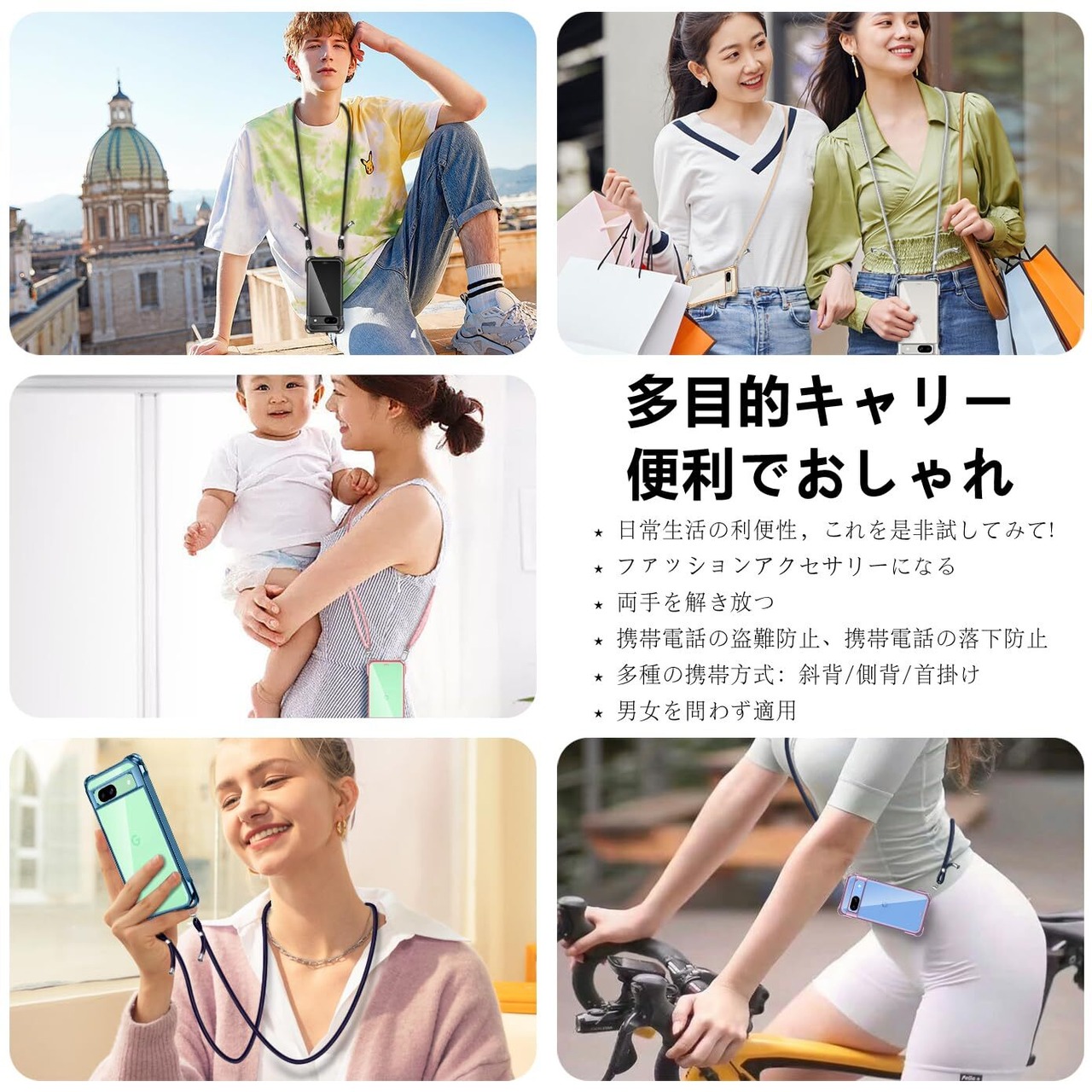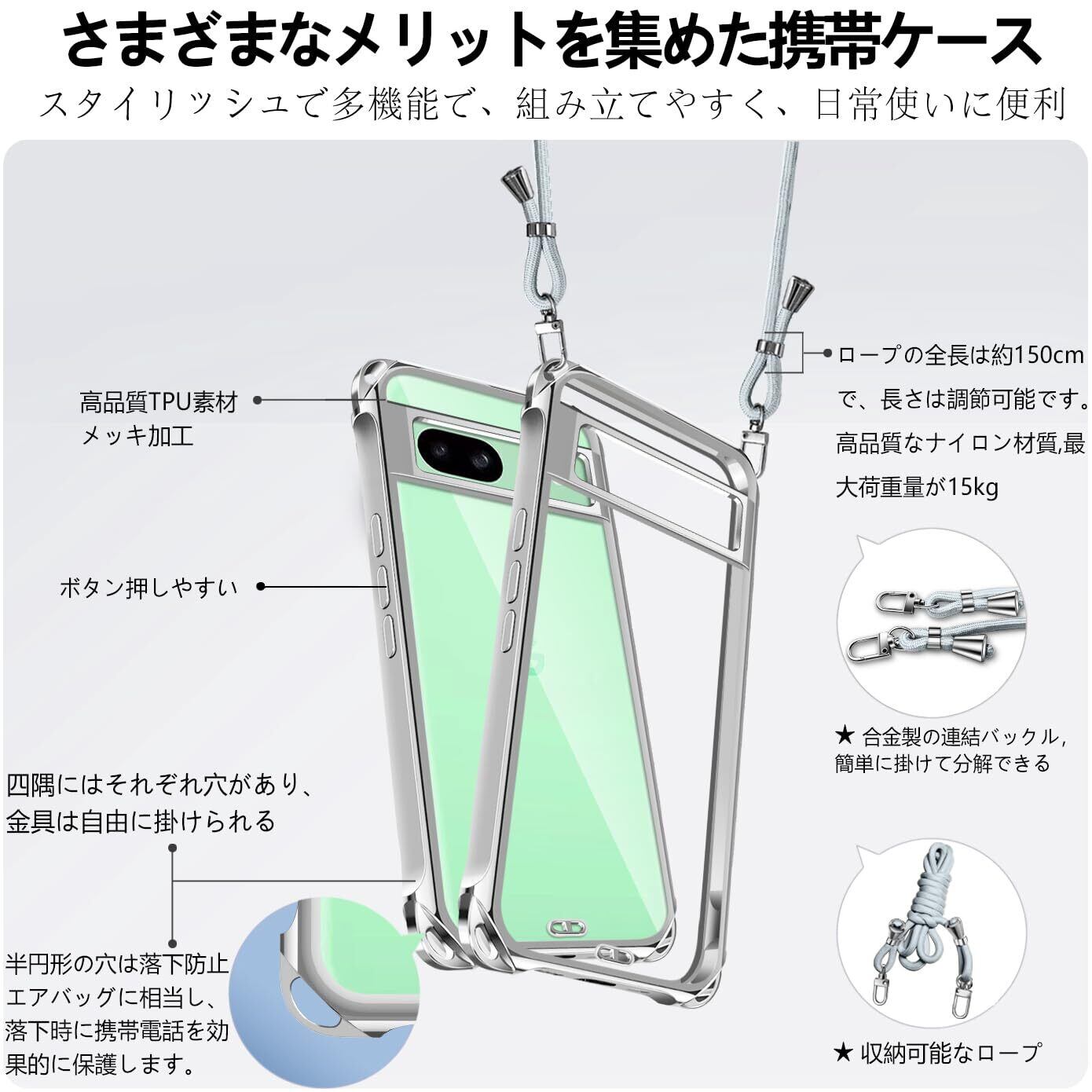 【新着商品】Google Pixel 8a ケース クリア ショルダー Google Pixel 8a スマホケース 携帯ストラップ ピクセル8a カバー 肩掛け 斜めかけ 縄掛けケース 透明 薄型 軽量 TPU 携帯ケース 紐付き 斜めがけ 織りストラップ付き 長さ調整可能 取り外し可能 落下防止 紛失防止(シルバー)