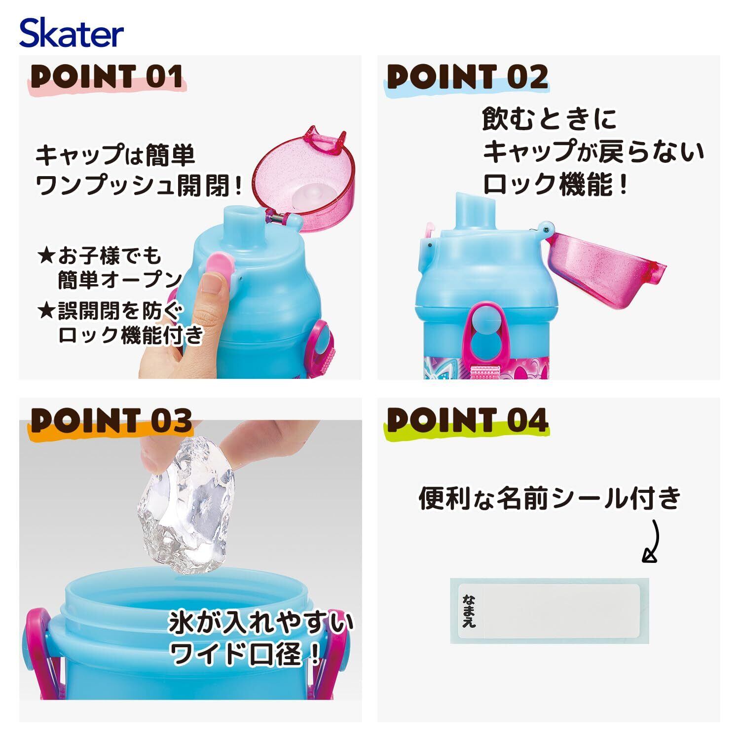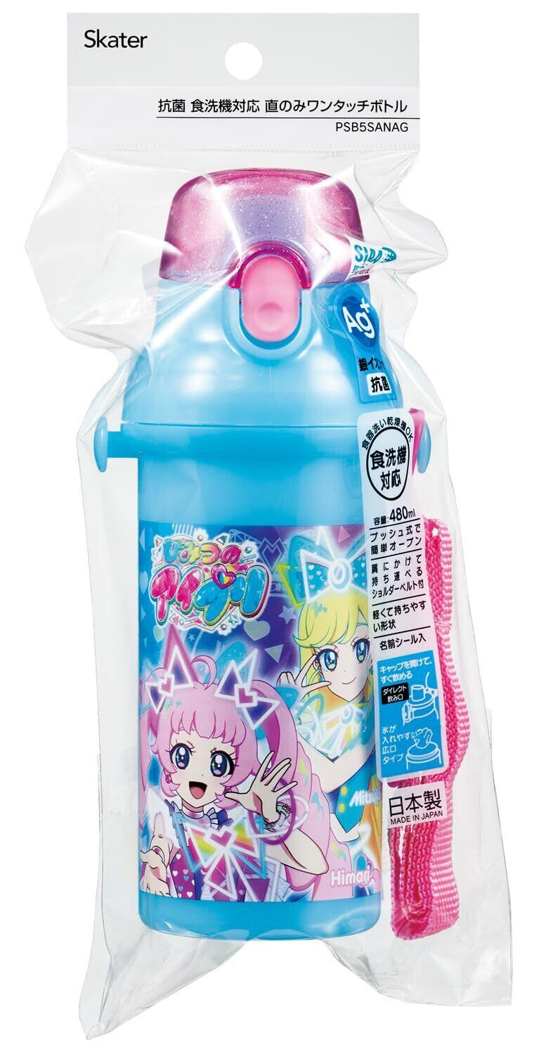 スケーター(Skater) 子供用 プラスチック 水筒 480ml ワンプッシュ開閉 抗菌 子供に優しい 軽量 抗菌加工 日本製 ひみつのアイプリ 女の子 PSB5SANAG-A