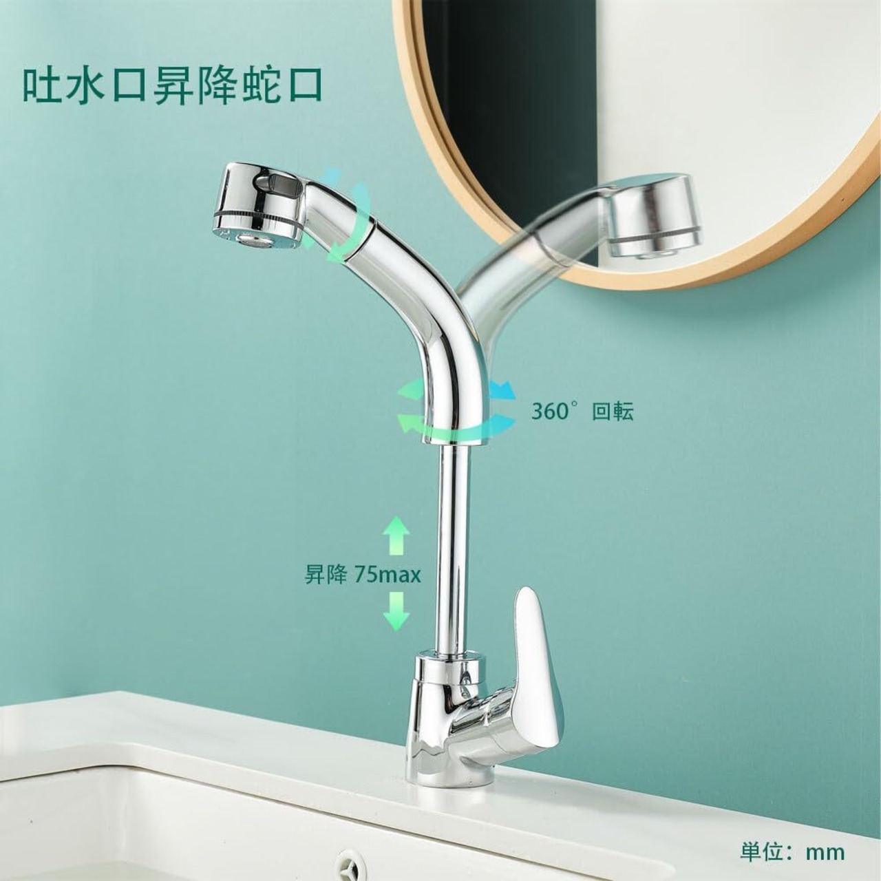 【吐水口昇降】昇降最大高さ約7.5 cm,髪を洗う時に便利です,朝の洗髪習慣のあるサラリーマンにはピッタリです。柔軟なリフトバーは、背の高い方にも最適です。