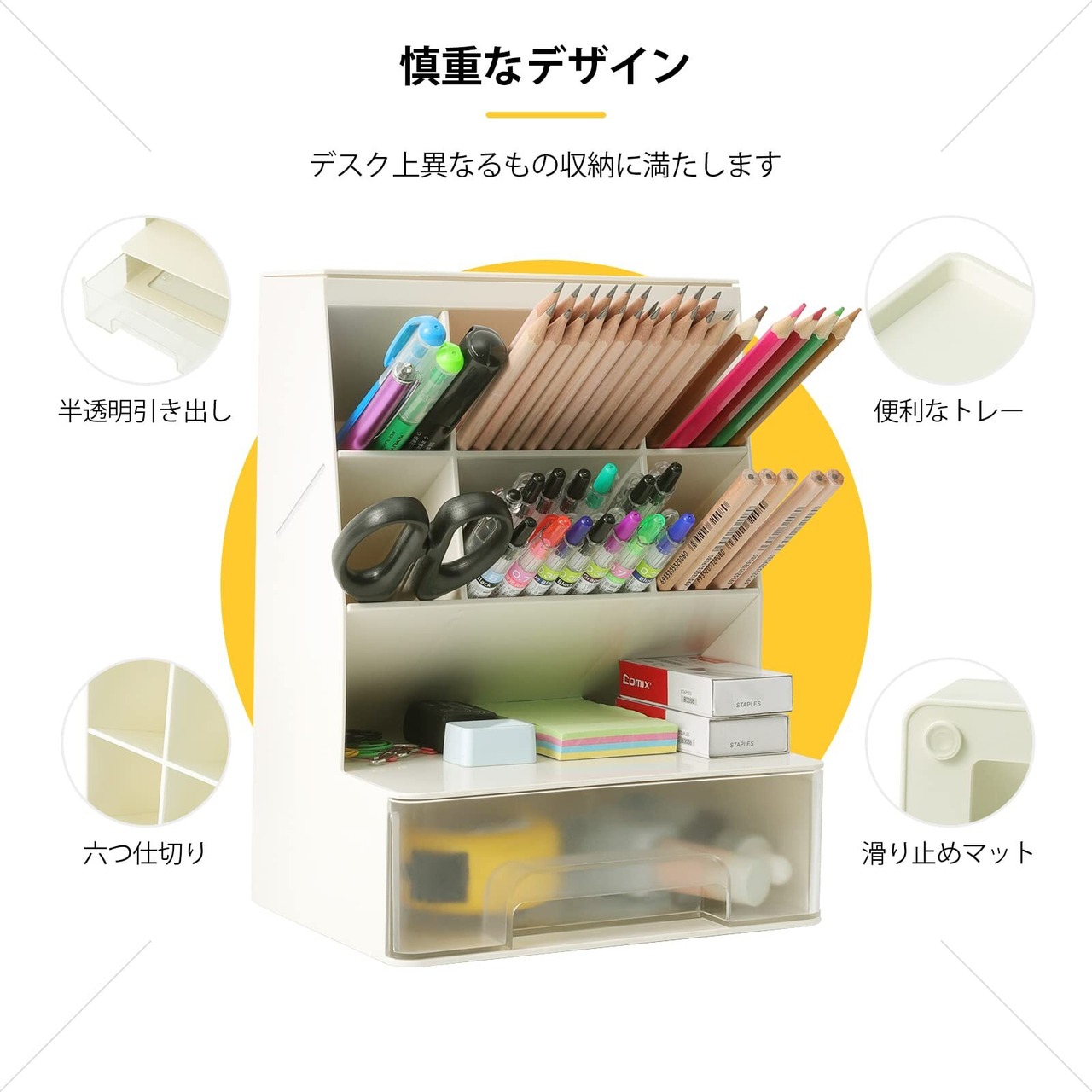 Homdolaser デスクオーガナイザー ペン立て 一体設計 卓上収納ボックス 分類収納 大容量 引き出し付き 小物 オフィス収納 透明引き出し 取付不要 整理整頓 ホワイト
