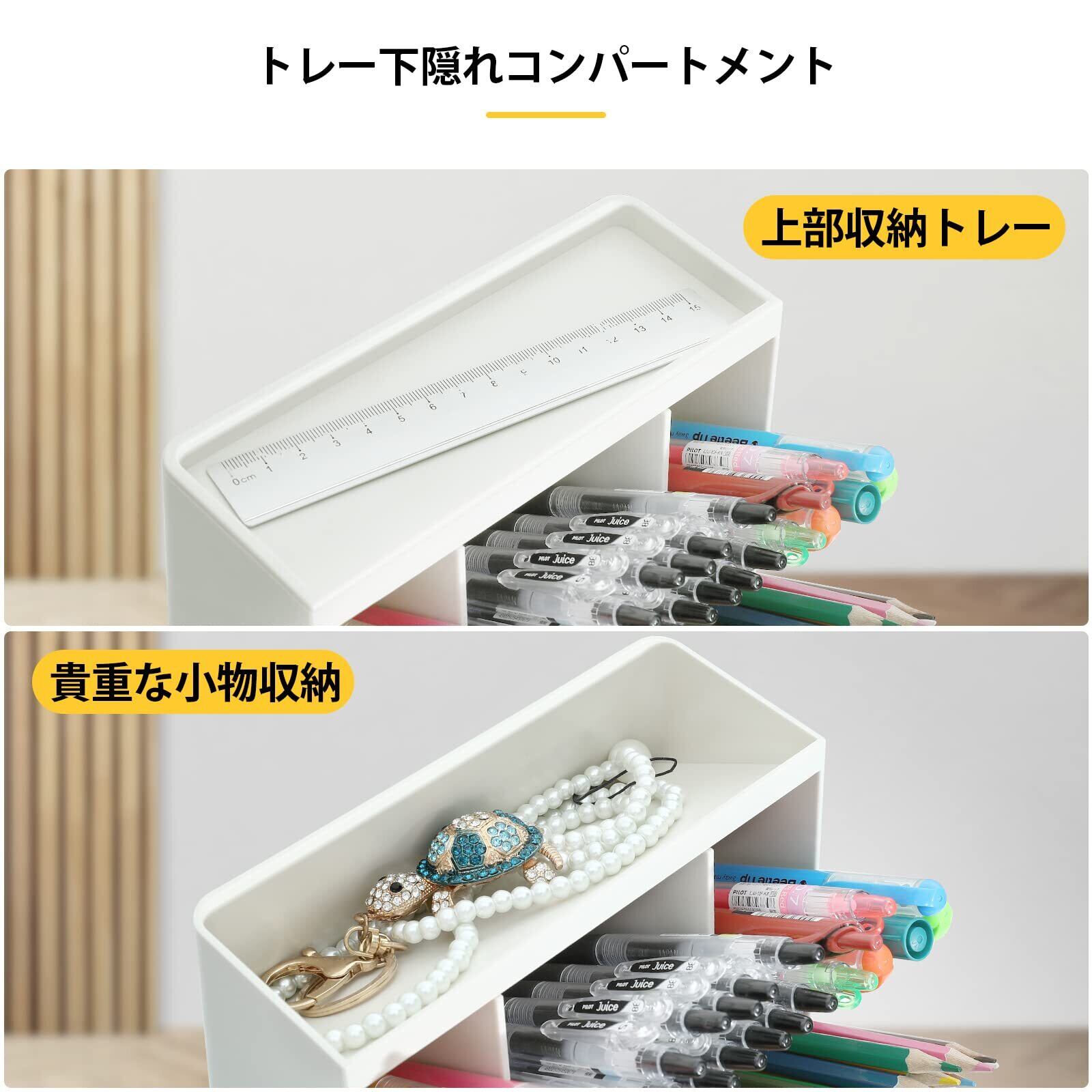【大容量】コンパクトなのに、収納力は想像以上です。デスク周りをすっきり収納出来ます。机の上に散乱しがちな文房具、小物類を整理整頓できます。鉛筆300本、テープ40巻、書類クリップ20個、ノートブック5冊まで収納出来ます。