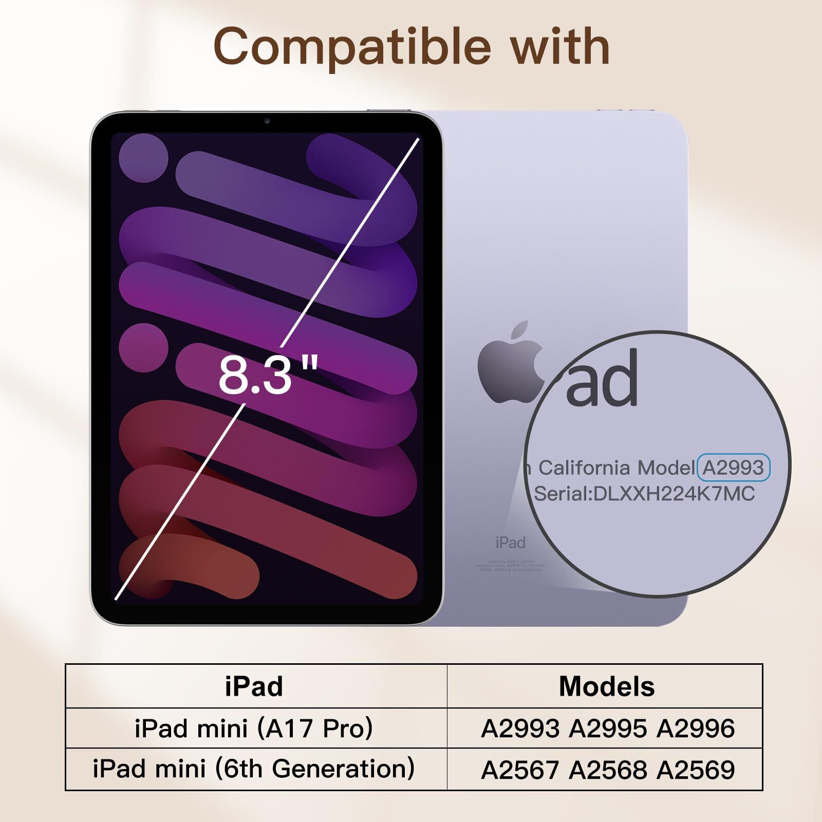 [互換性] iPad mini (A17 Pro 2024 モデル、第7世代) / mini 6 (8.3インチ、2021モデル、第6世代)用の特別デザインです。対応モデル:A2993 / A2995 / A2996 / A2567 / A2568 / A2569。ご購入の前、おデバイスの裏面にあるモデル番号をご確認ください