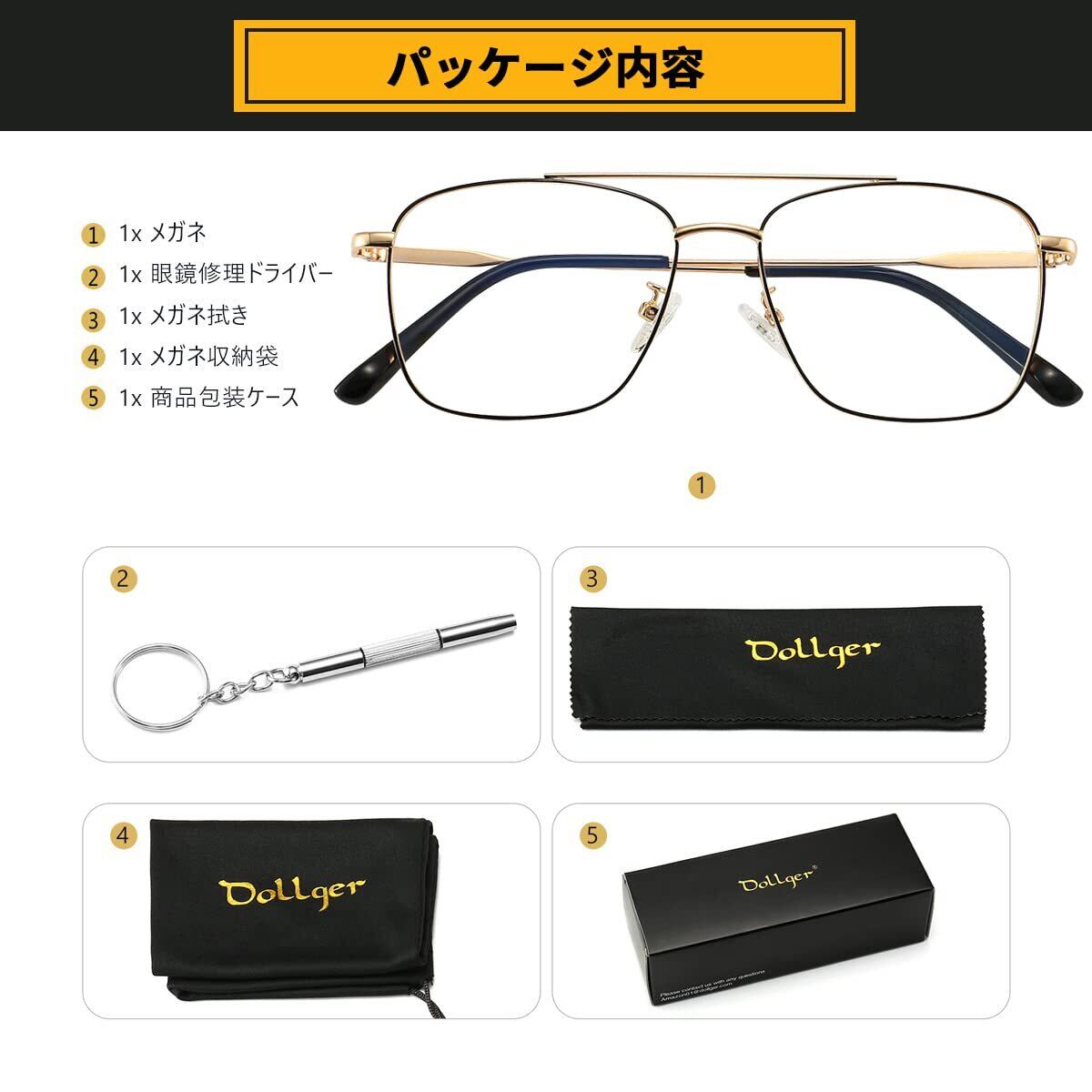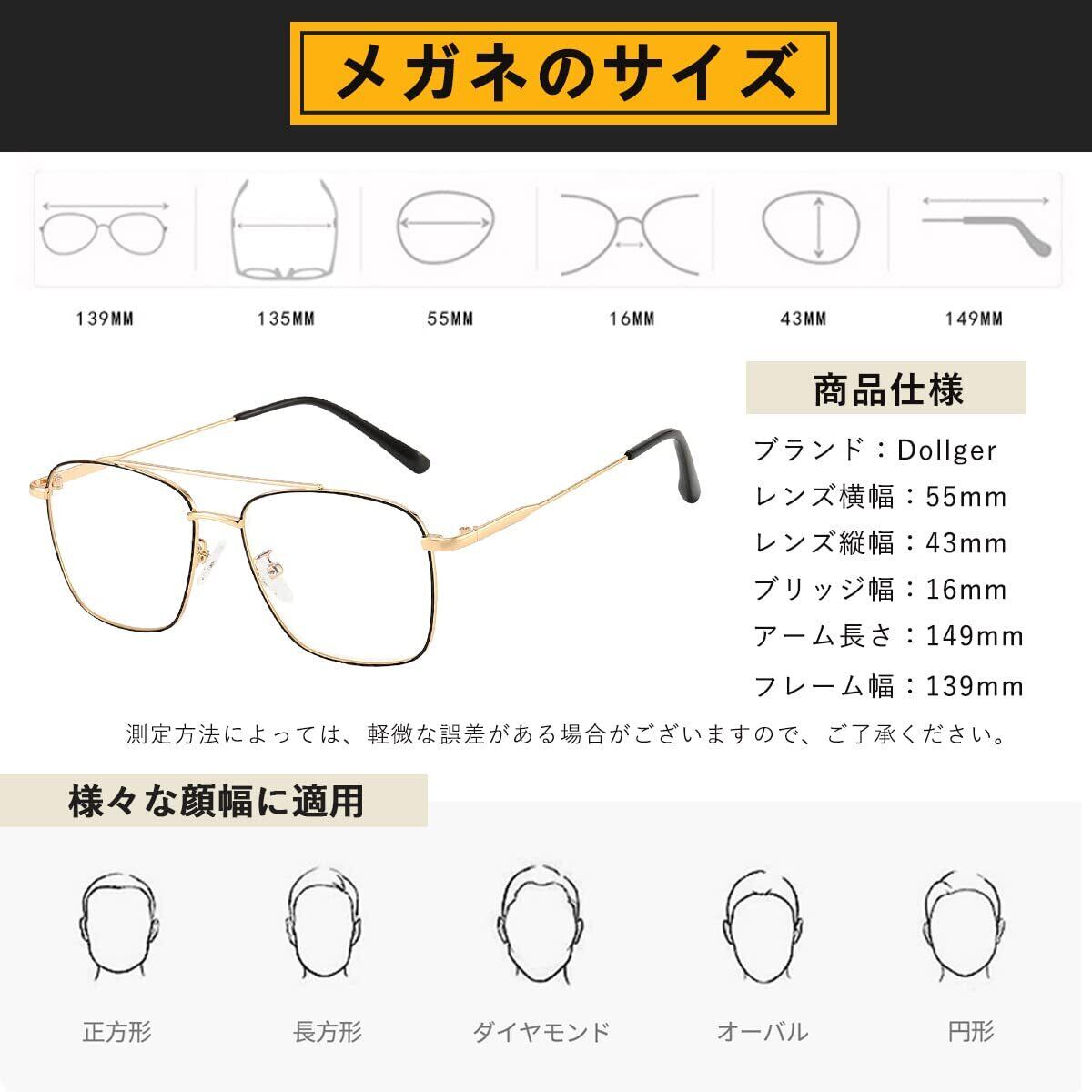 [Dollger] 伊達メガネ ファッションメガネ 度なし 軽量 UVカット 紫外線カット スクエアメガネ 眼鏡 透明レンズ 金属フレーム 小顔効果 レトロスタイル おしゃれ レディース メンズ