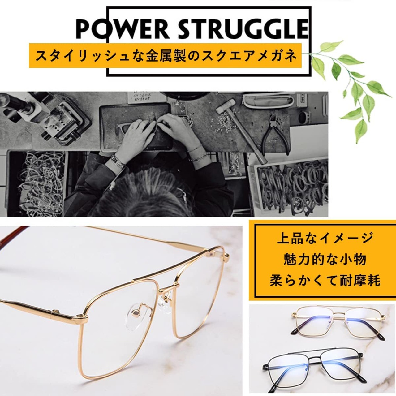 【クラシックなファッションメガネ】スタイリッシュな金属製の大きめのスクエアメガネは知的で上品なイメージを生んでいます。どんな顔にもフィットし、着用中に魅力的であるので、欠かせないファッションアイテムになります。