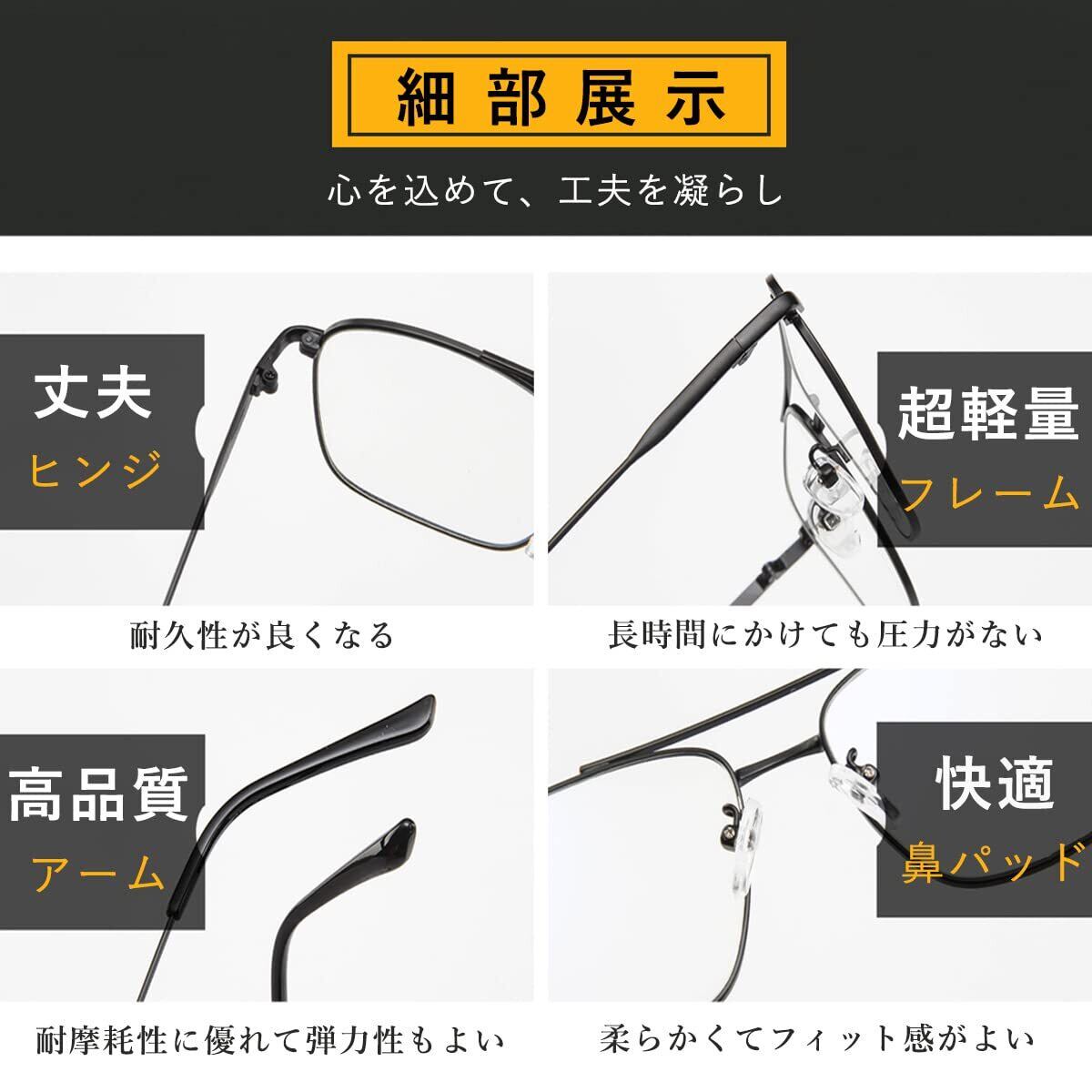 【伊達メガネ 軽量】メガネのフレームは超軽量で快適なメタルを採用して、柔らかくて耐摩耗性に優れて弾力性もよいです。人体工学による一体式のデザインで、長時間にかけても快適で、耳やこめかみが痛くなりにくいです