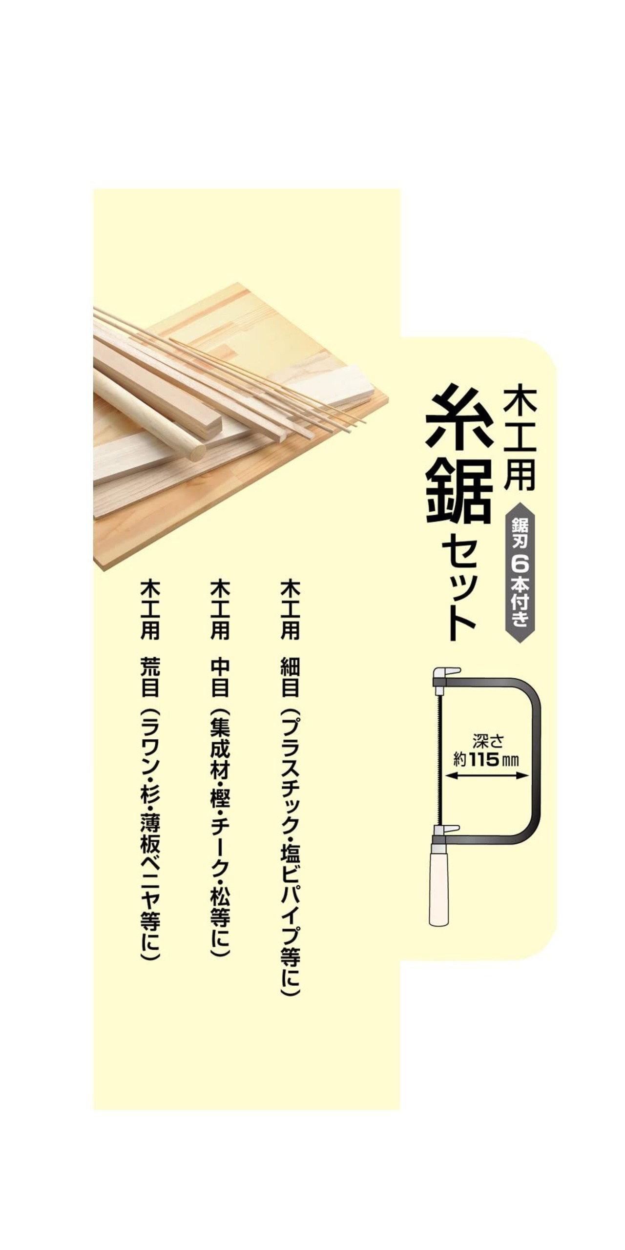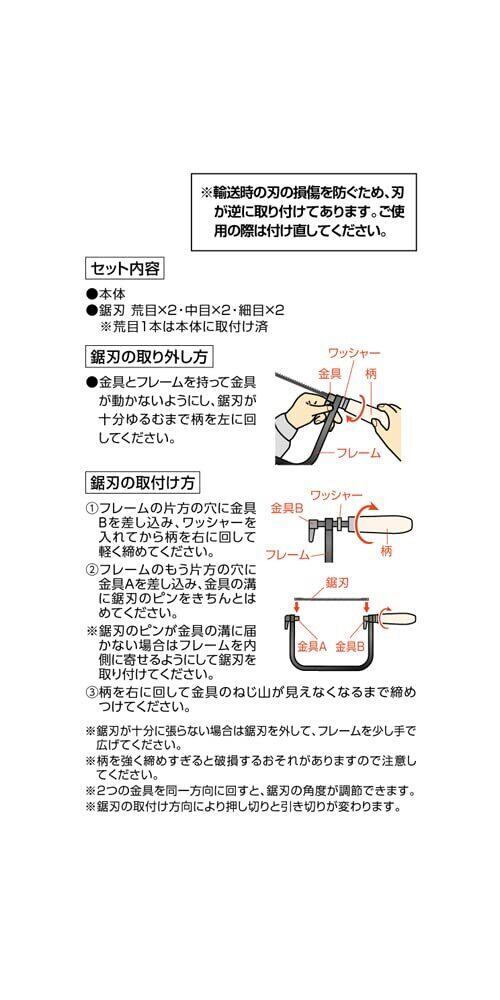 セット内容:本体、鋸刃荒目×2、鋸刃中目×2、鋸刃細目×2 ※荒目1本は本体に取付け済