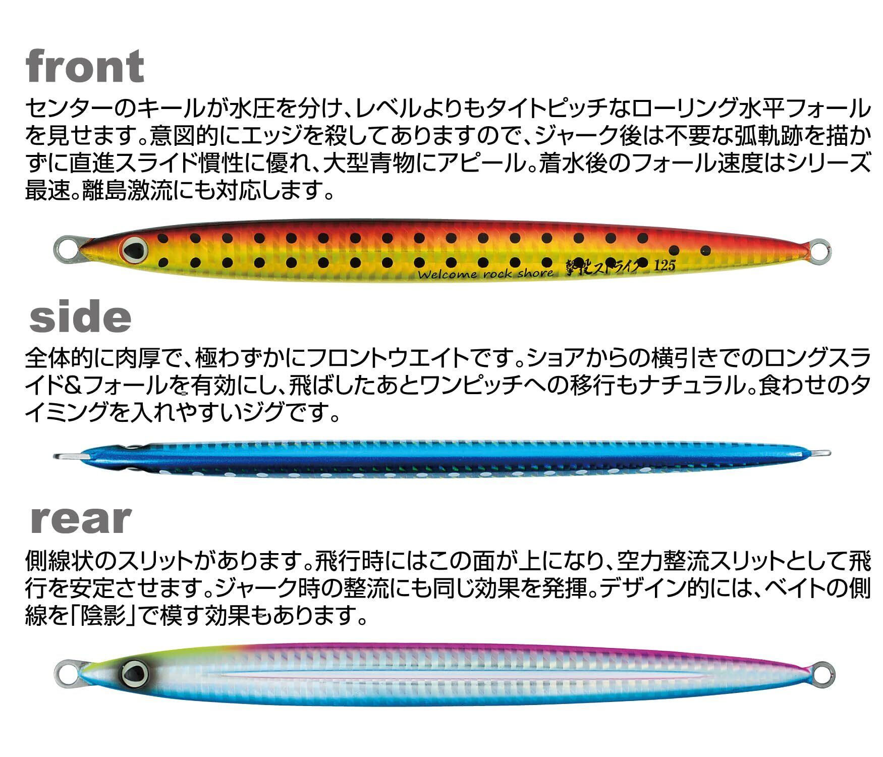 意図的にエッジを殺してありますので、 ジャーク後は不要な弧軌跡を描かずに直進スライド慣性に優れ大型青物にアピール。