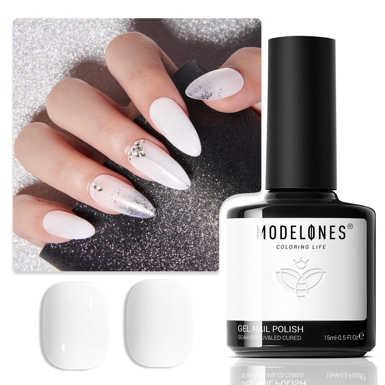 【人気商品】Modelones ジェルネイル シアーカラージェル 単色 透明感ある 15ml UV/LED対応 初心者&プロ適用 ポリッシュタイプ セルフネイル(白色 ホワイト)