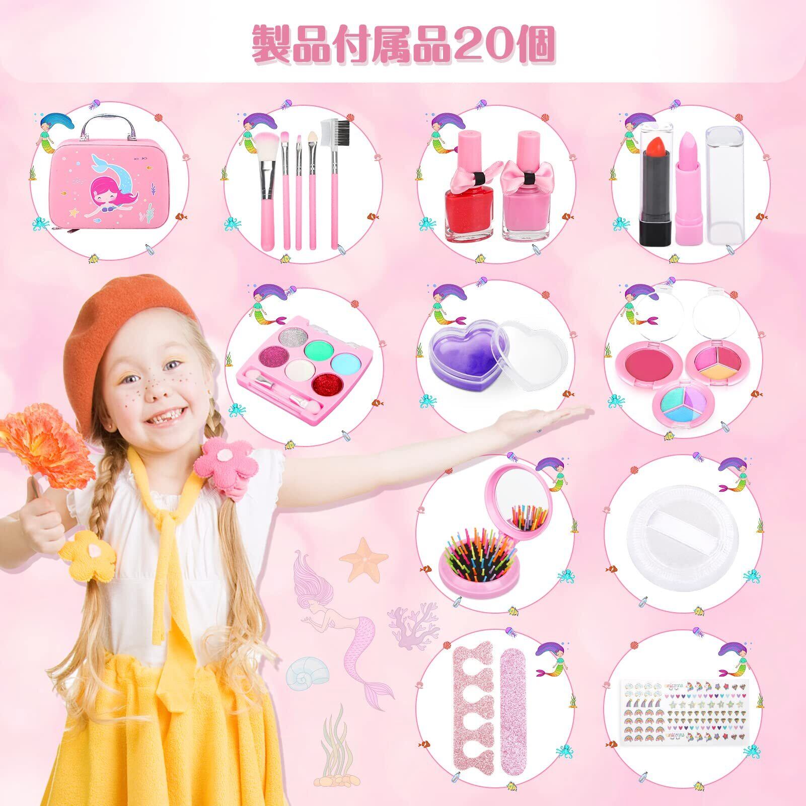 ウォッシャブル & 安全性コスメセット セット:すべての化粧品は水洗い可能で、水で簡単に落とせます。無毒で、お子様にも安全です。(注:本製品を使用する前に、アレルギー反応がないか耳の後ろでテストしてください)。
