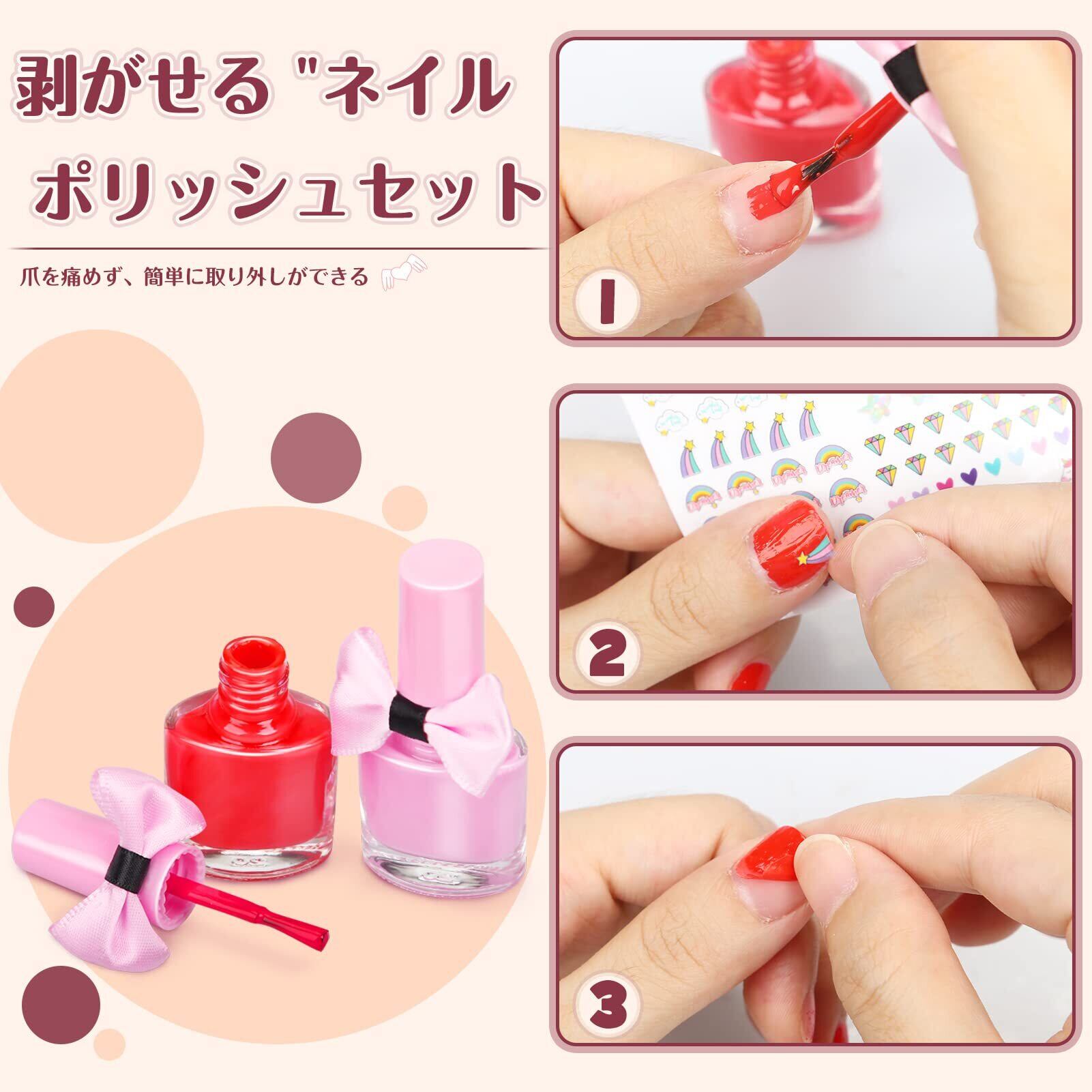 速乾 子供 マニキュア:つま先セパレーターとカラフルなマニキュア2色がセットになった、お子さまがDIYでネイルデコレーションができるセットです。 はがしやすい水性マニキュア。