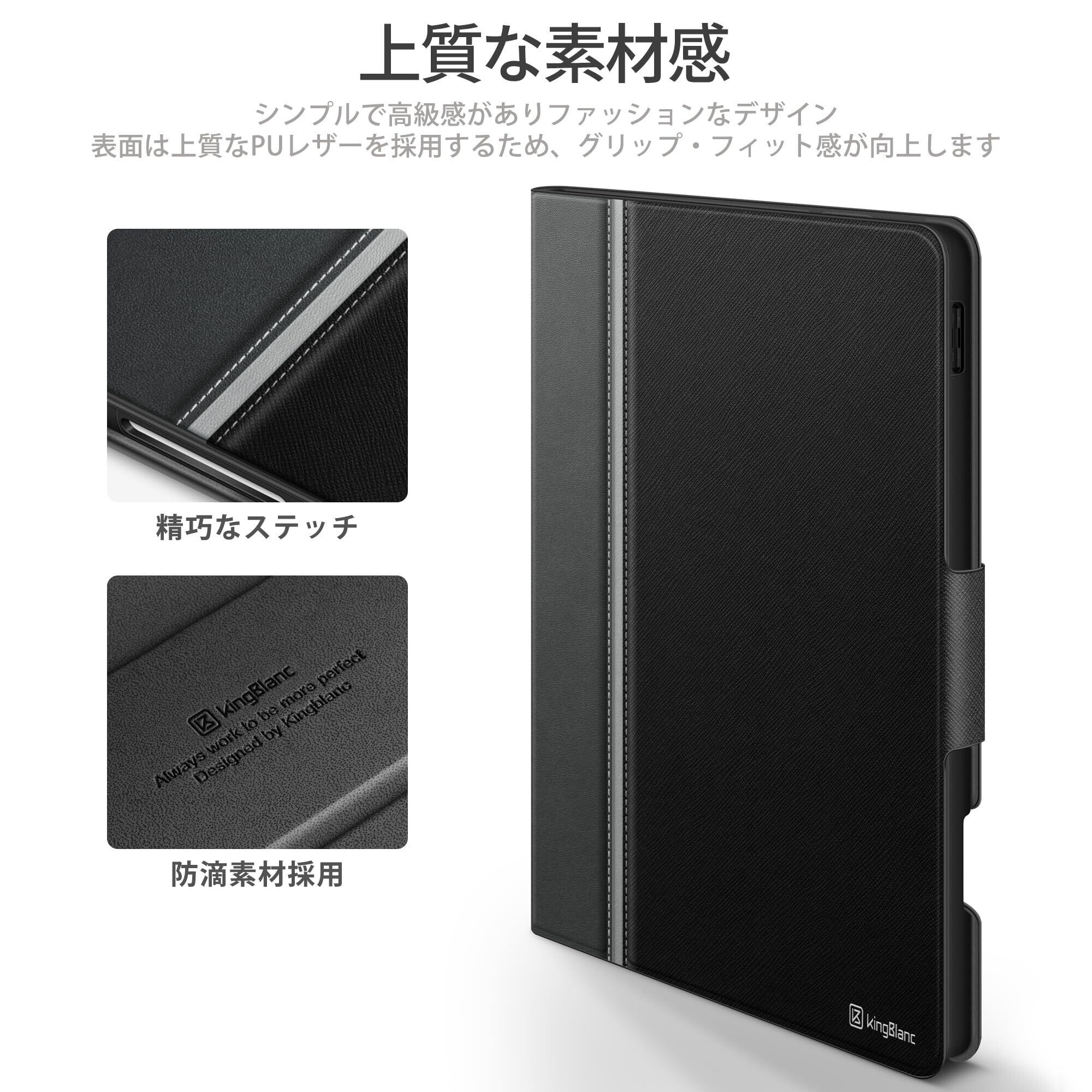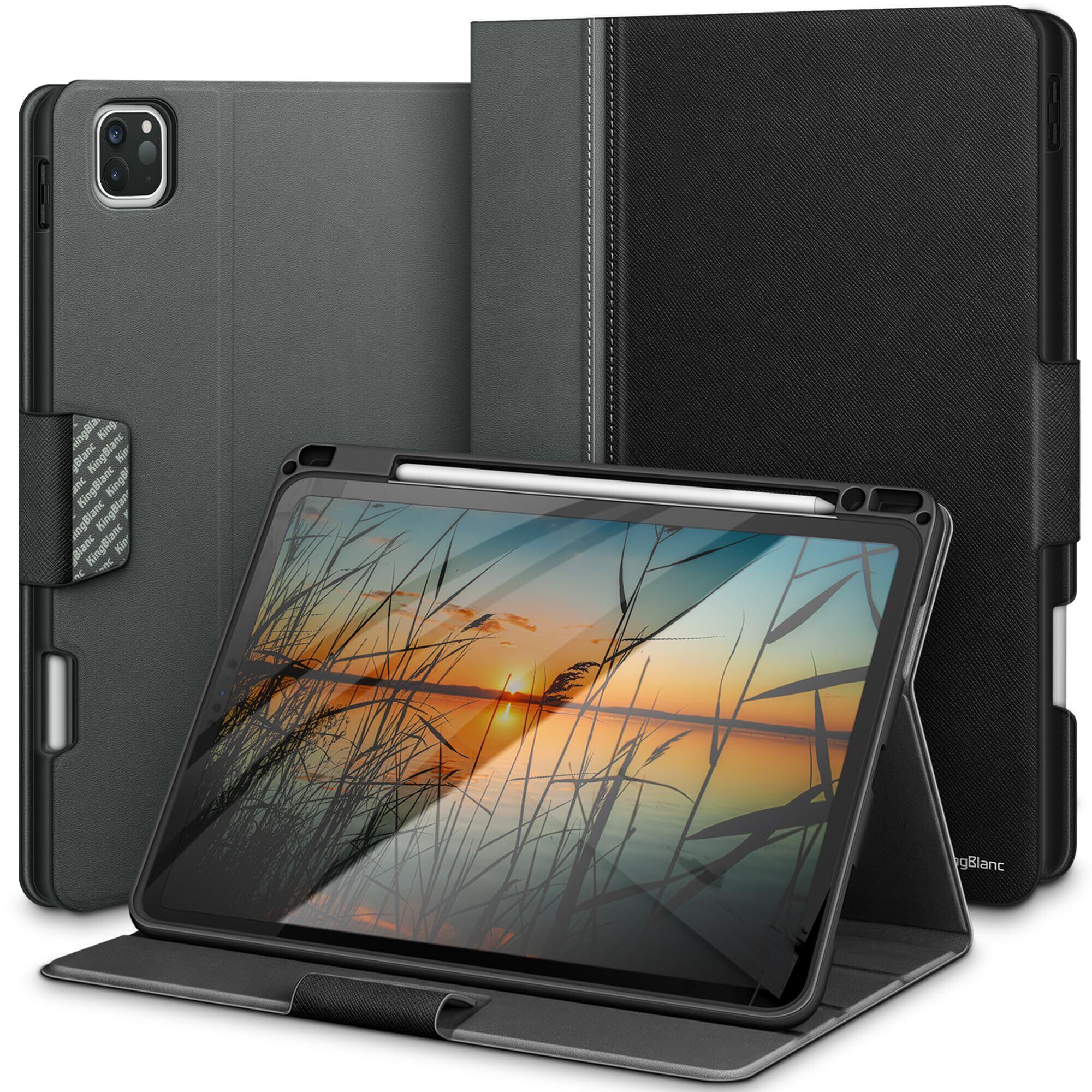 KingBlanc iPad Pro 11インチ ケース 第4/3/2/1世代 2022/2021/2020/2018 モデル兼用 手帳型 ペンホルダー付き Apple Pencil収納可能 ペアリング・ワイヤレス充電対応 オートスリープ・スタンド機能付き 高級PUレザー製 傷つけ防止 全面保護 カバー iPadPro11 対応, ブラック