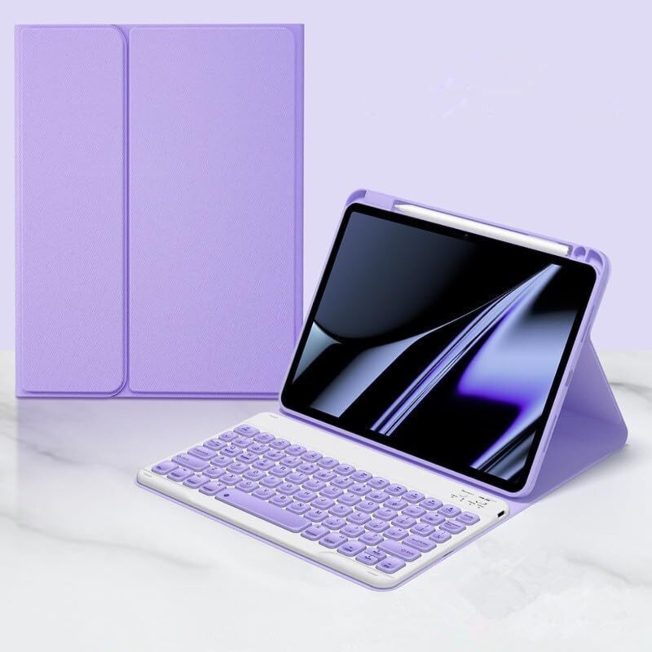 【在庫処分】iPad 第9/8/7世代 10.2インチ キーボード iPadAir3 iPadPro10.5 ケース 丸いキー 球状くぼみ 入力しやすい iPad 9 iPad 8 iPad 7 キーボード付き カバー 分離式 マグネット Bluetooth キーボード,紫