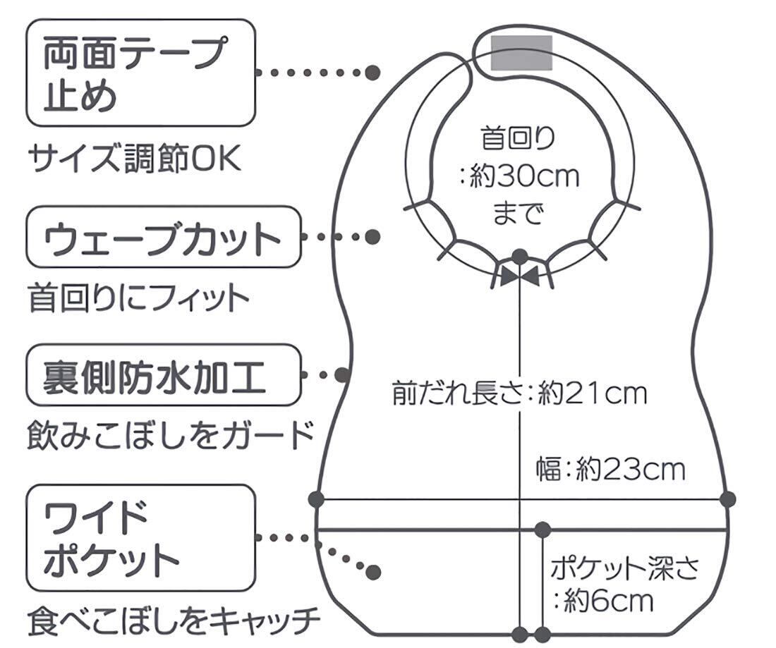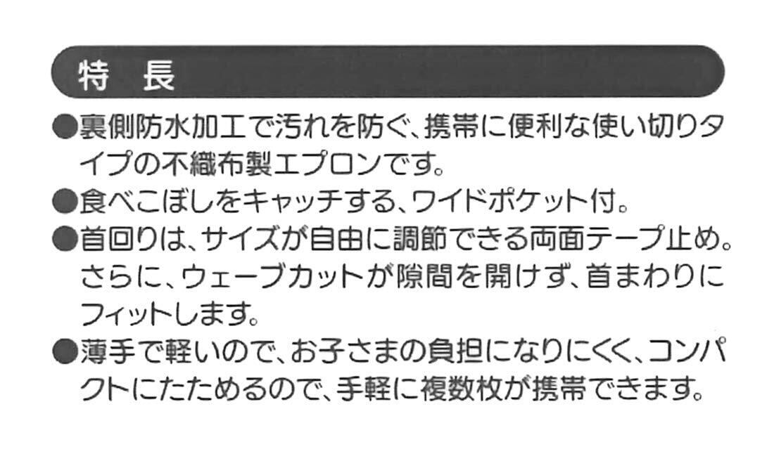 裏側は防水加工で汚れを防ぐ、携帯に便利な使いきりタイプの不織布 スタイ