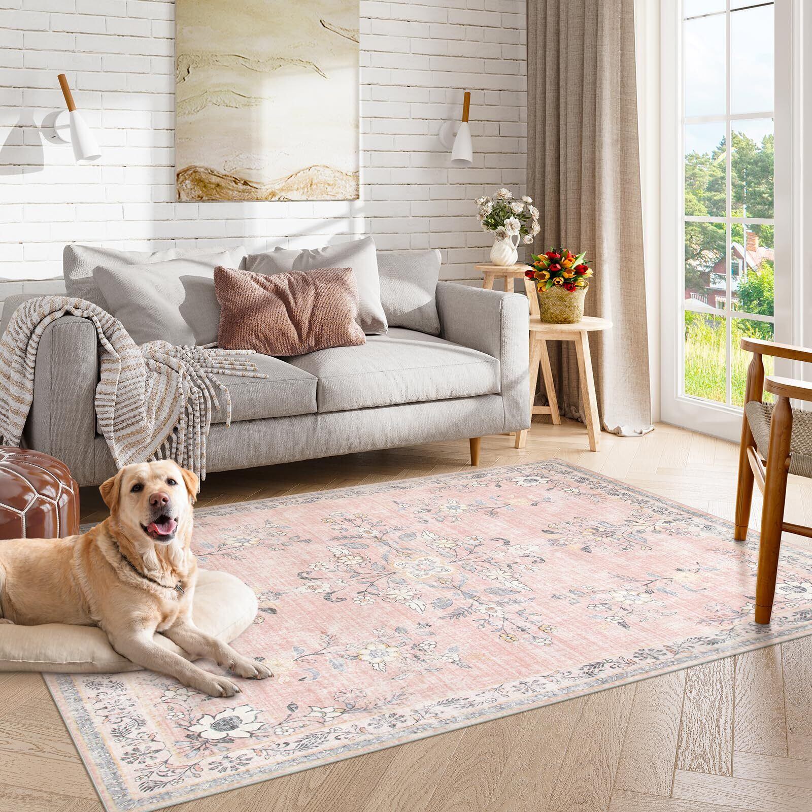 【在庫処分】HAOCOO カーペット 洗える 140х200cm ラグ 約1.5畳 オールシーズン適用 ペルシャ風 じゅうたん 滑り止め 低反発 防音 寝室 リビング ラグマット 抗菌防臭 耐磨耗性 軽量 花柄 コーラルピンク | nico3588