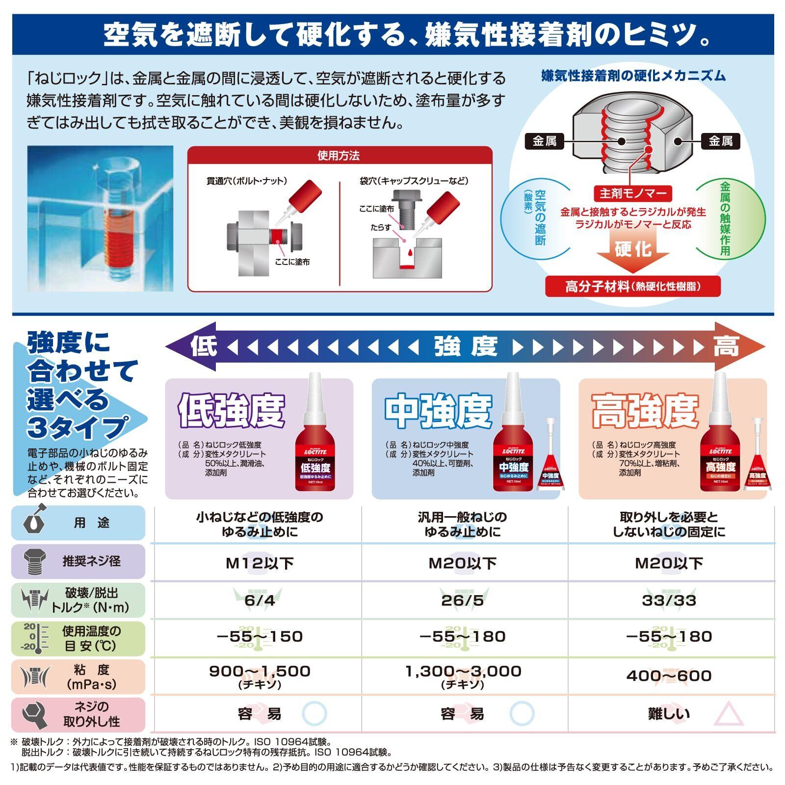 金属接合部で空気の供給を断つことによって硬化し、衝撃、振動によるねじのゆるみを防止します。