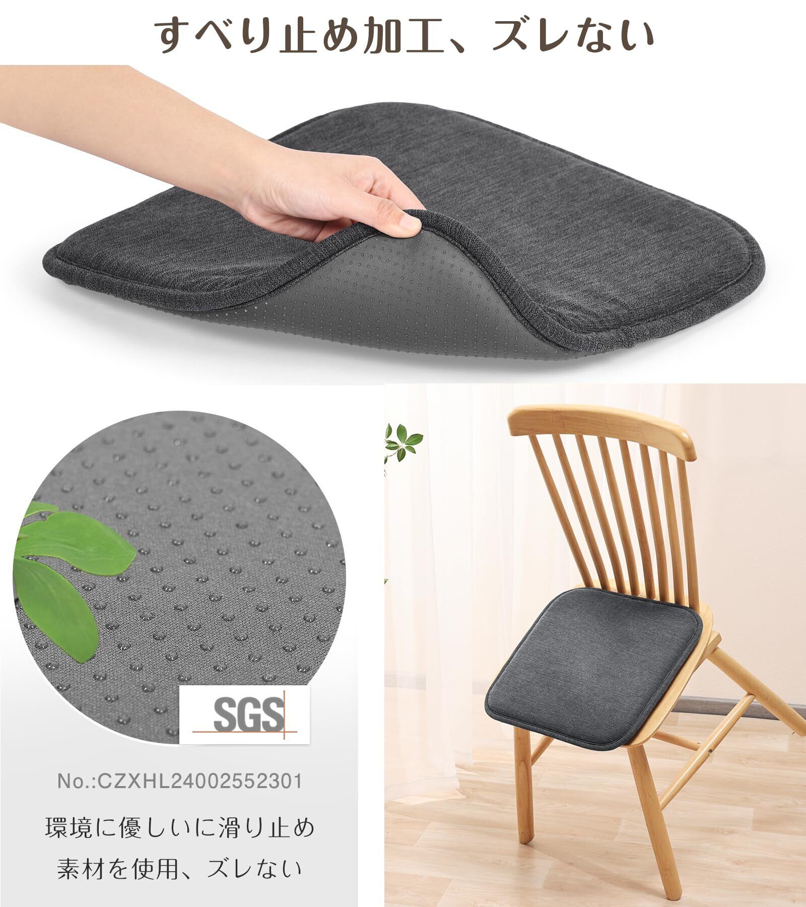 Shinnwa 椅子座布団 高反発 2枚セット四角 椅子クッション お尻が痛くならない ダイニングチェア用クッション デスクチェアクッション 事務椅子用座布団 滑り止め 洗える ブラックグレー