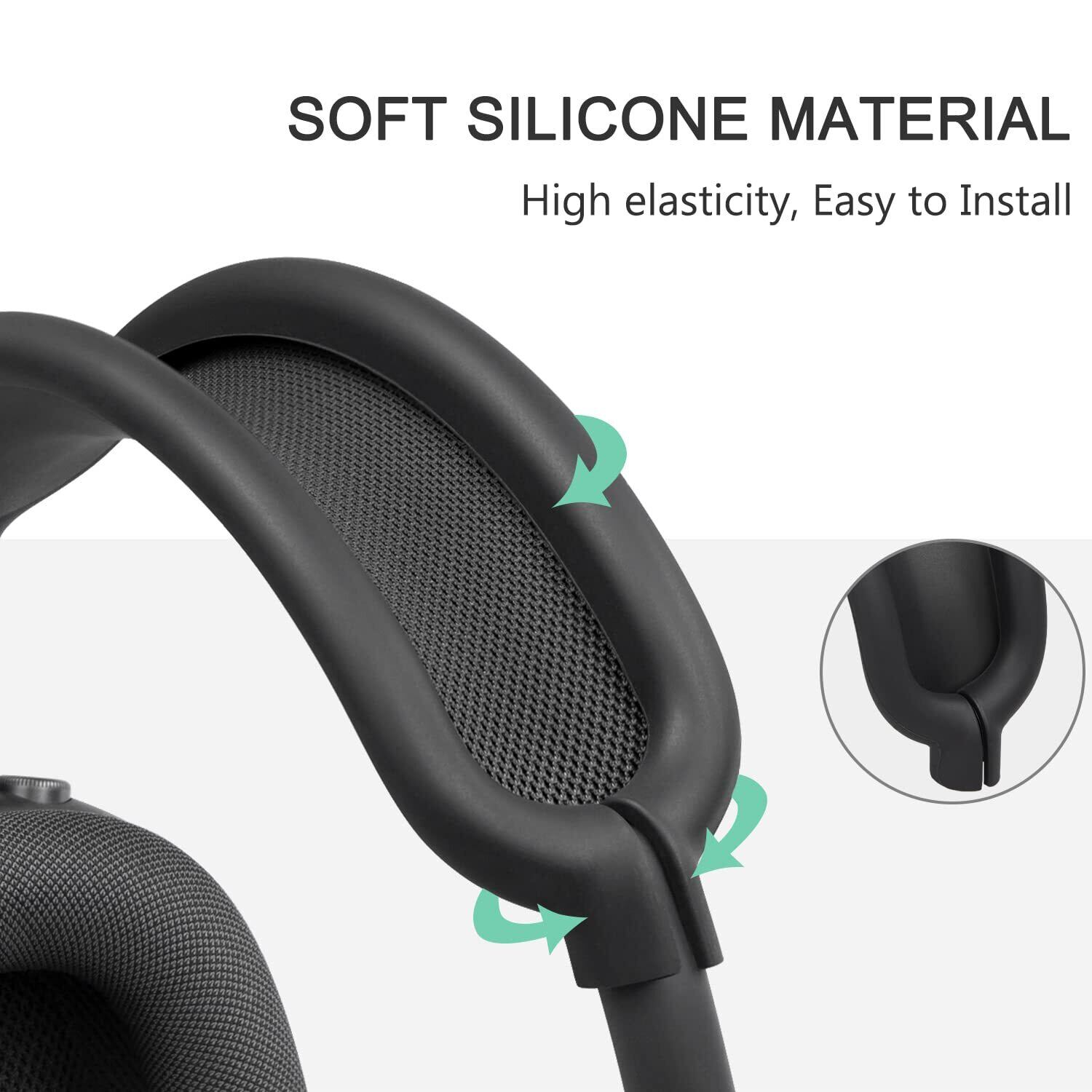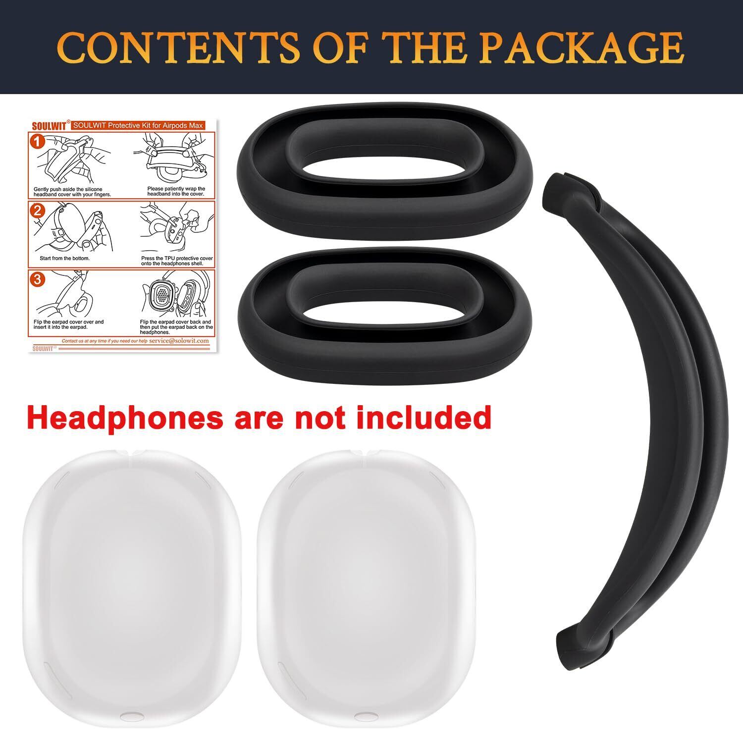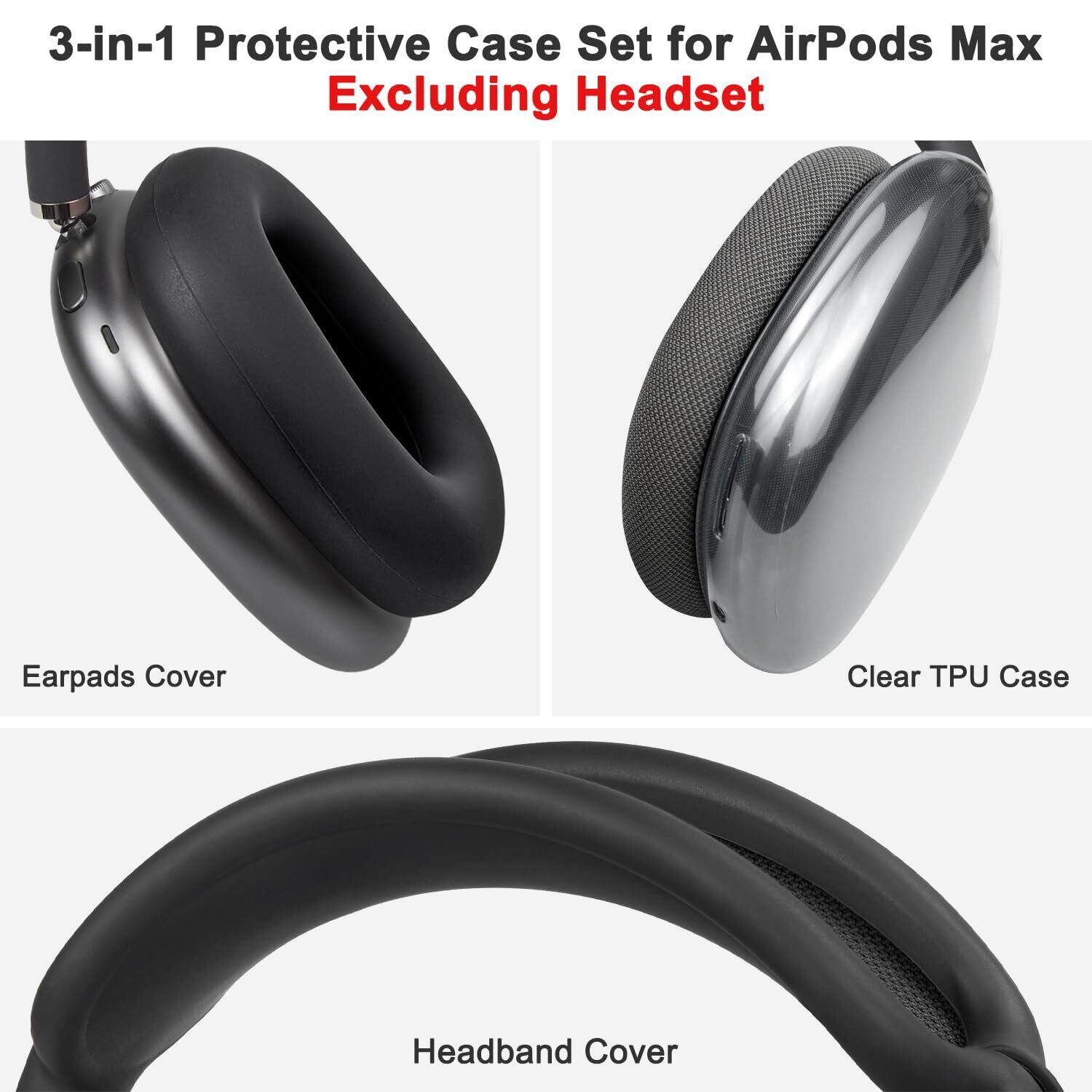 SOULWIT 保護アクセサリー AirPods Max 用 TPU カバー + ヘッドバンド カバー + イヤーパッド ケース 多方面保護 キット キズ防止 汗に強い 手軽に洗える 防塵 軽量 薄型 (ブラック)