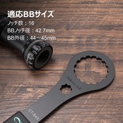 【ボトムブラケットツール】シマノのホローテックⅡやカンパニョーロのウルトラトルクなどに採用されている16ノッチ、BBサイズ:42.7mm(ノッチ径)/44~45mm(外径)のエクスターナルタイプのBBカップ用ボトムブラケットツールです。