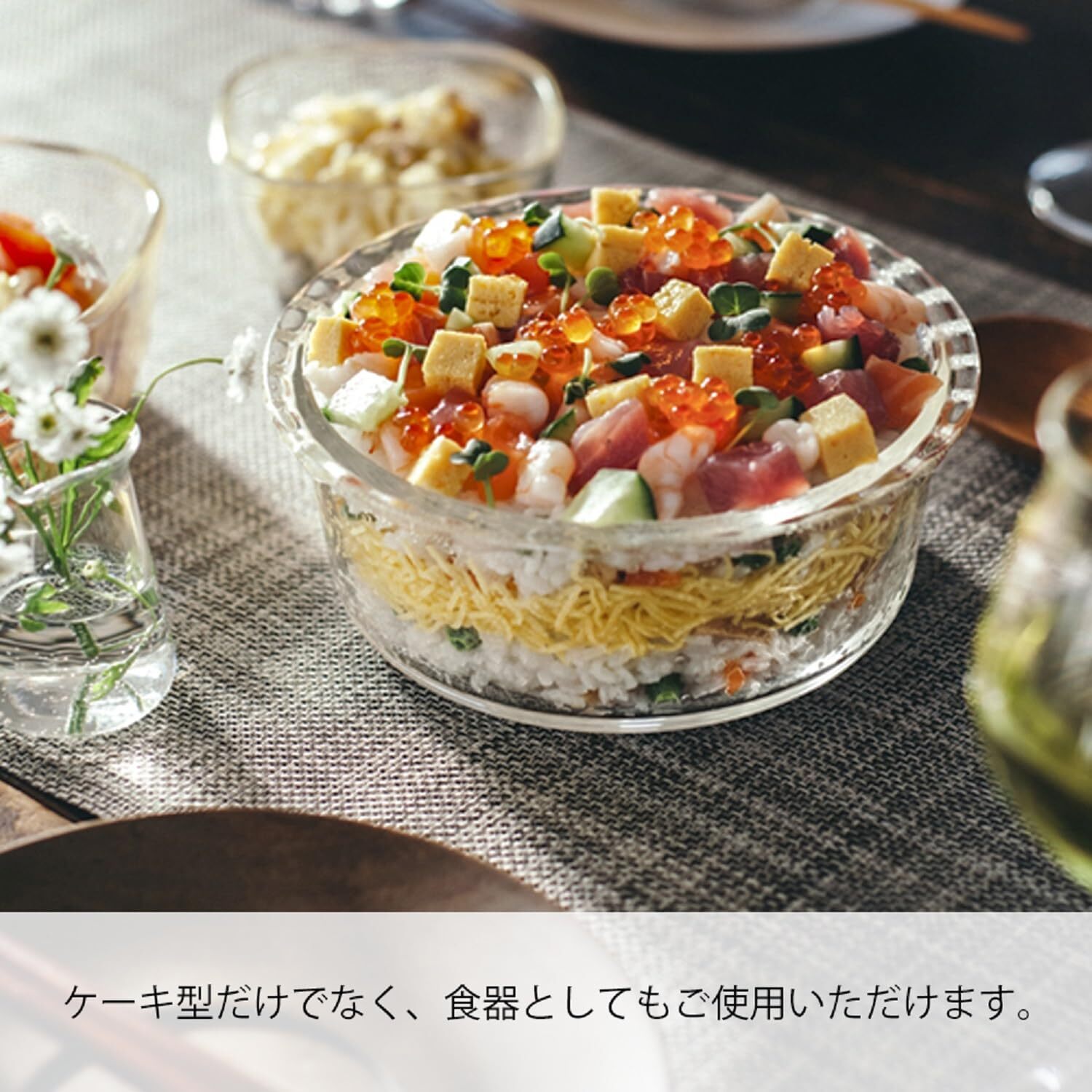 【多用途】 ケーキ型だけでなく、サラダや前菜を盛り付ける器としても活躍します。透明なガラス素材なので、ゼリーやティラミスなどの魅せるデザート作りにもおすすめ。