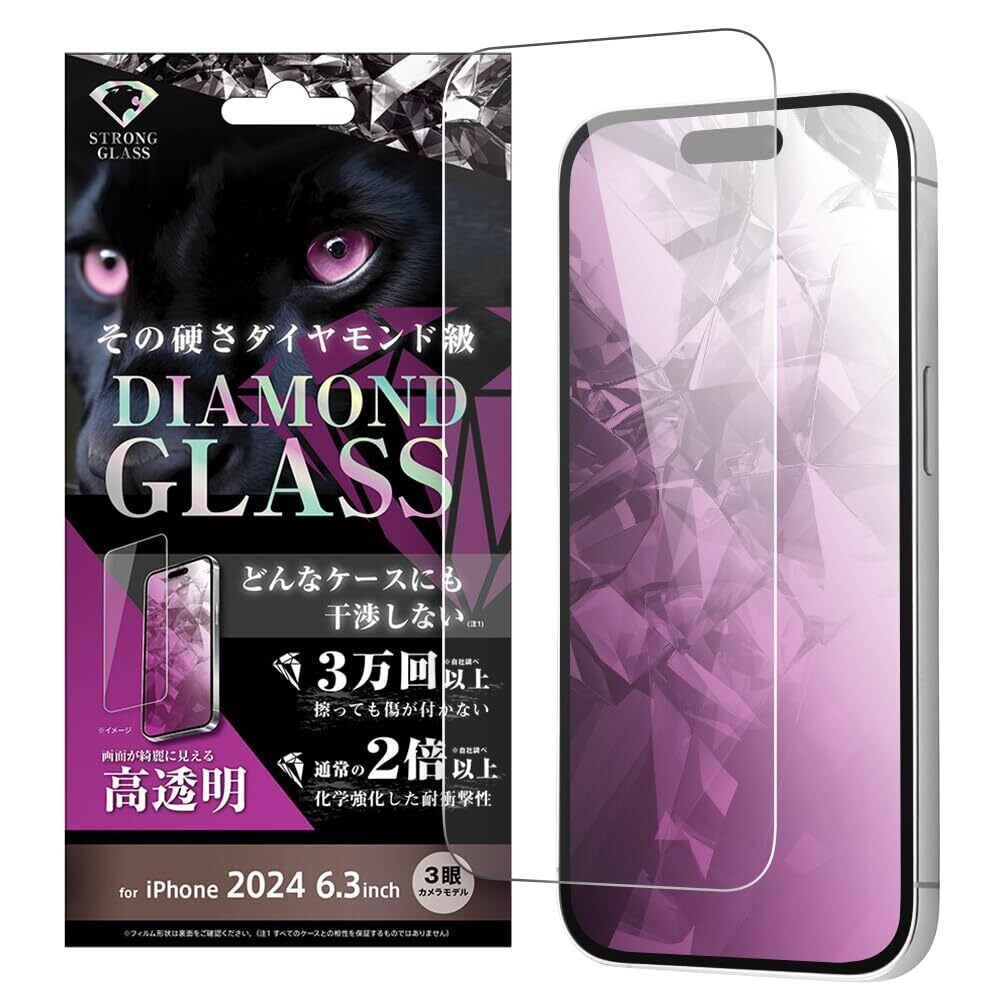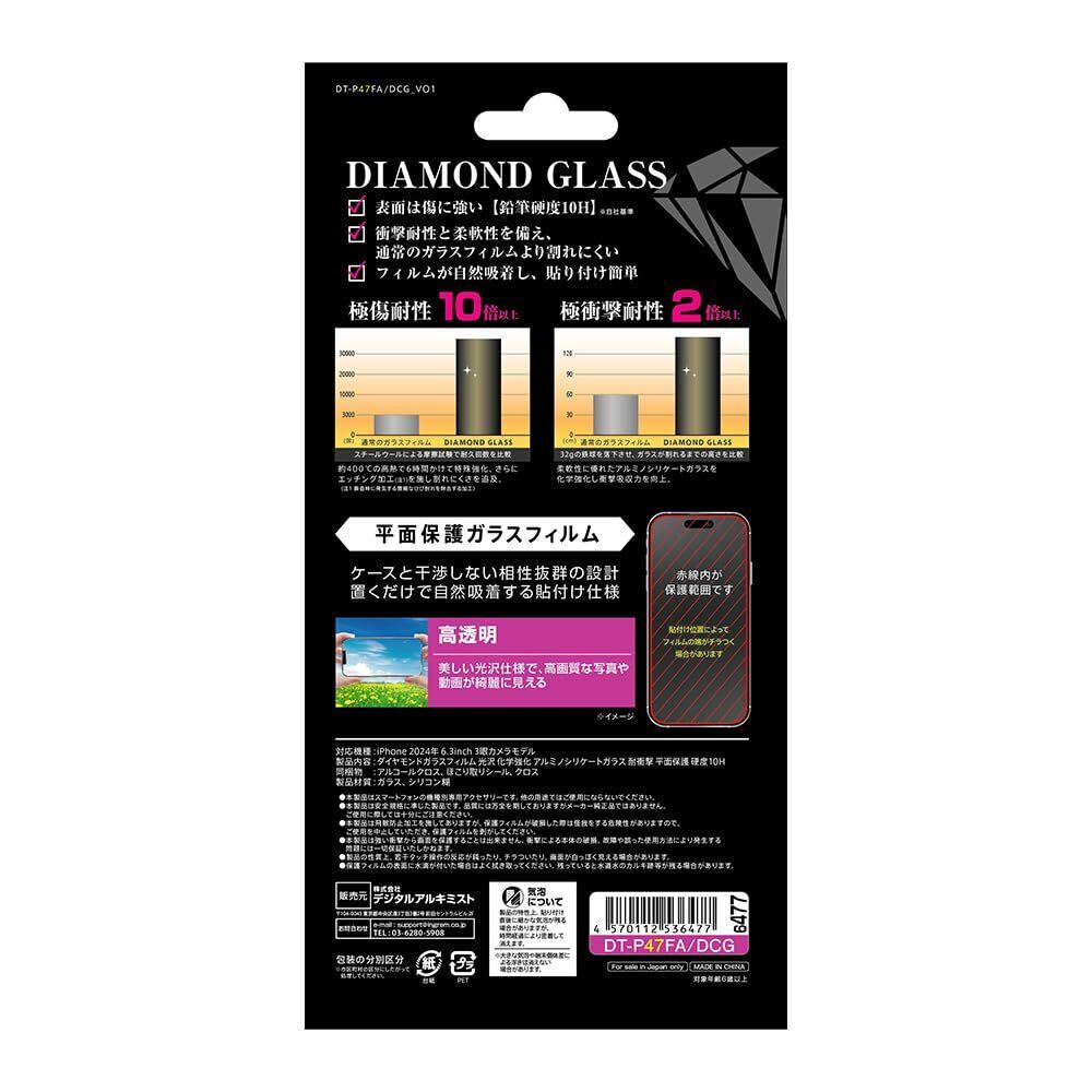 デジタルアルキミスト iPhone 16 Pro (2024年発売モデル) フィルム ダイヤモンドガラスフィルム 光沢 化学強化 アルミノシリケートガラス 耐衝撃 平面保護 硬度10H スマホフィルム アイフォン16 DT-P47FA/DCG