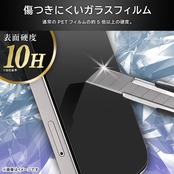 表面は傷に強い【鉛筆硬度10H】※自社基準。美しい光沢仕様で、高画質な写真や動画が綺麗に見える。柔軟性に優れたアルミノシリケートガラスを化学強化し衝撃吸収力を向上。置くだけで自然吸着する貼付け仕様。