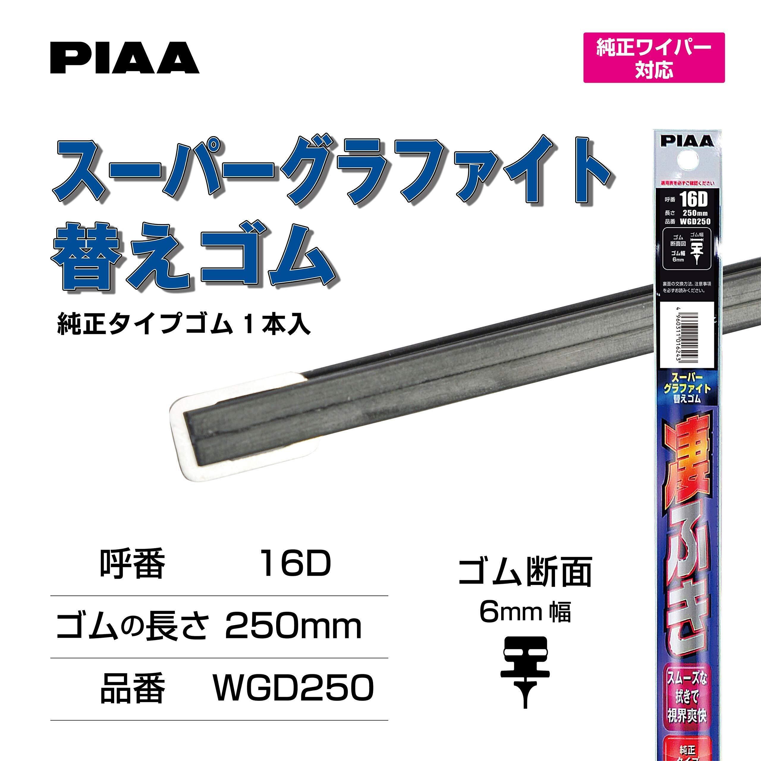 PIAA(ピア) ワイパー 替えゴム 250mm スーパーグラファイト グラファイトコーティングゴム 1本入 呼番16D 特殊金属レール仕様 WGD250
