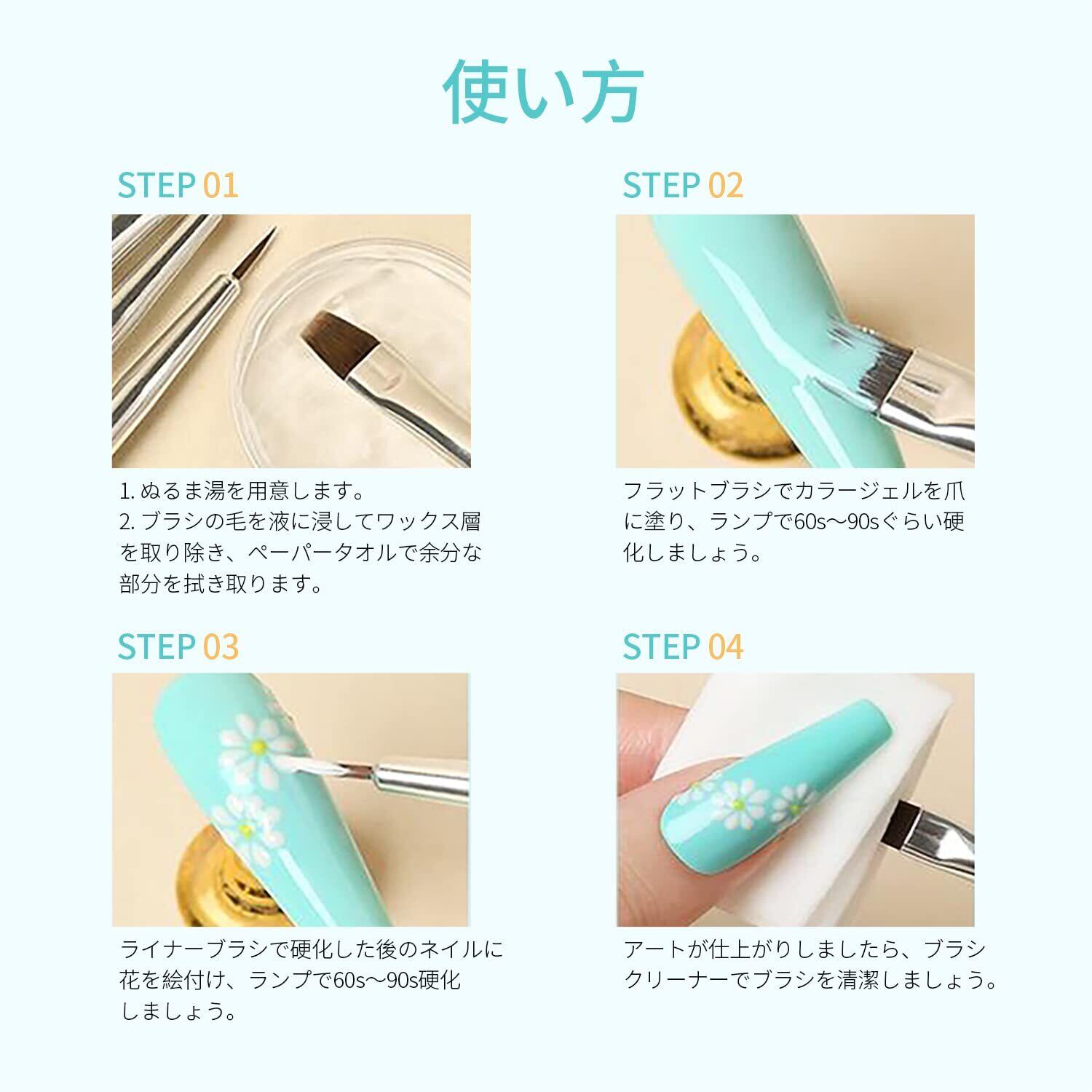バンドルセット:プロ仕様のネイルブラシには、6種類のネイルデザインペンが付属しています。ネイルエクステンションジェルブラシ、ビルダージェルブラシ、ネイルカービングペン、ネイルアートライナーブラシ、ネイルドットペンなど。 自宅で簡単に美しいネイルアートを作ることができます