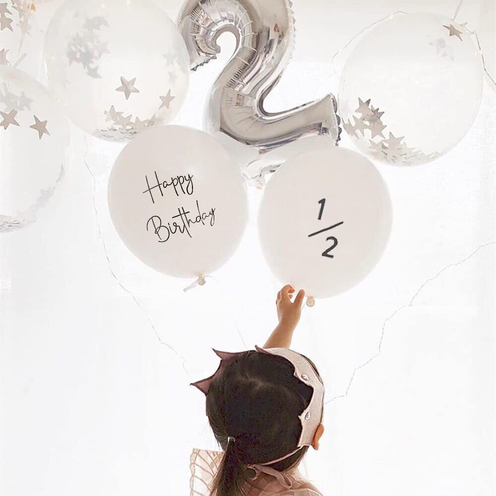 【4点セット】天使の羽1個 + シルバーヘアバンド1個 + ハーフバースデーバルーン2個。ヘアバンドのサイズ:平置き約15.5 cm×3.5 cm。天使の羽のサイズ:約28 cm×18 cm。