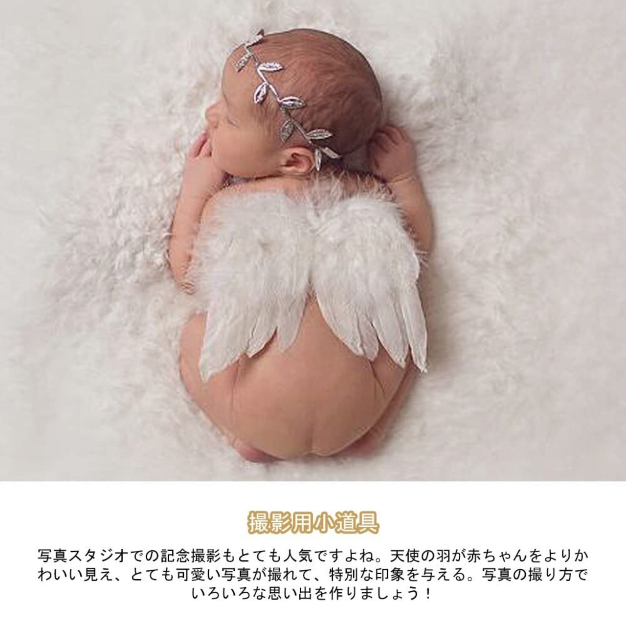 【高品質な素材】ヘアバンドと肩にかけるゴムは高品質の弾性バンドでできています、新生児の敏感な肌に負担をかけません。白い羽と銀色のヘアバンドは安全で柔らかい素材で構成され、非常に軽く、翼は頑丈で耐久性があり、変形や色褪せしにくいです。