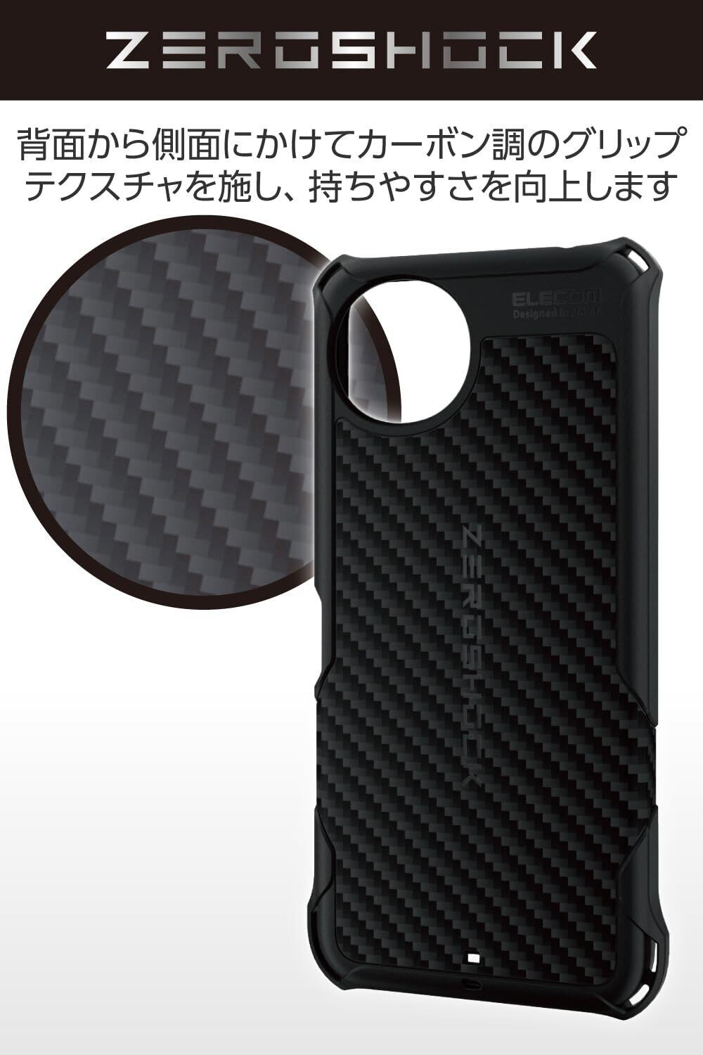 ■ケース背面から側面にかけてカーボン調のグリップテクスチャーを施すことで、滑りにくくし持ちやすさを向上しています。
