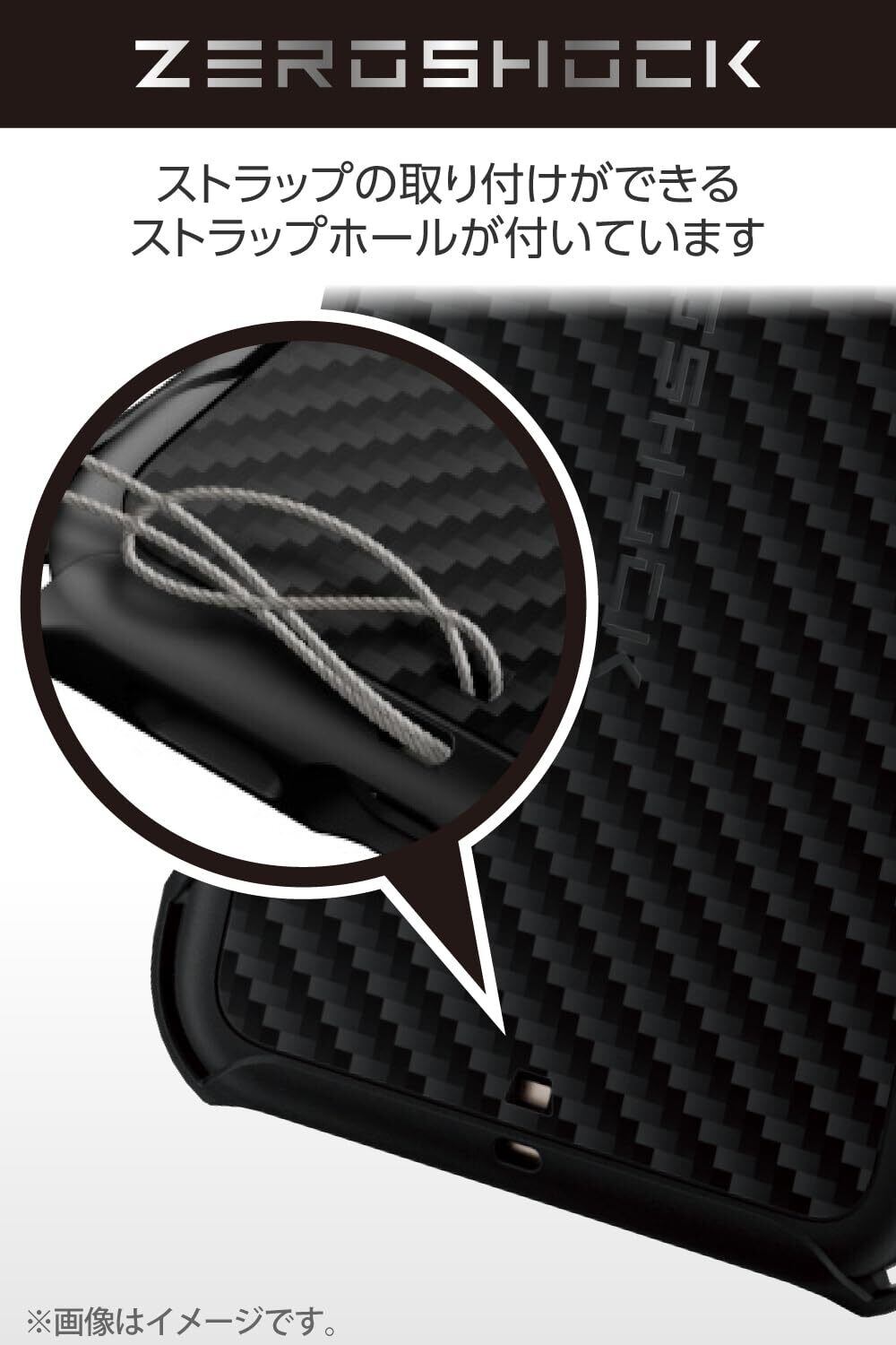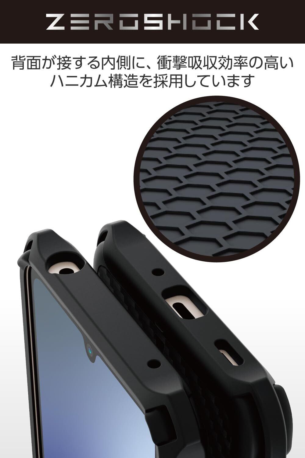 ■衝撃吸収構造で端末を衝撃から守るZEROSHOCKケースです。